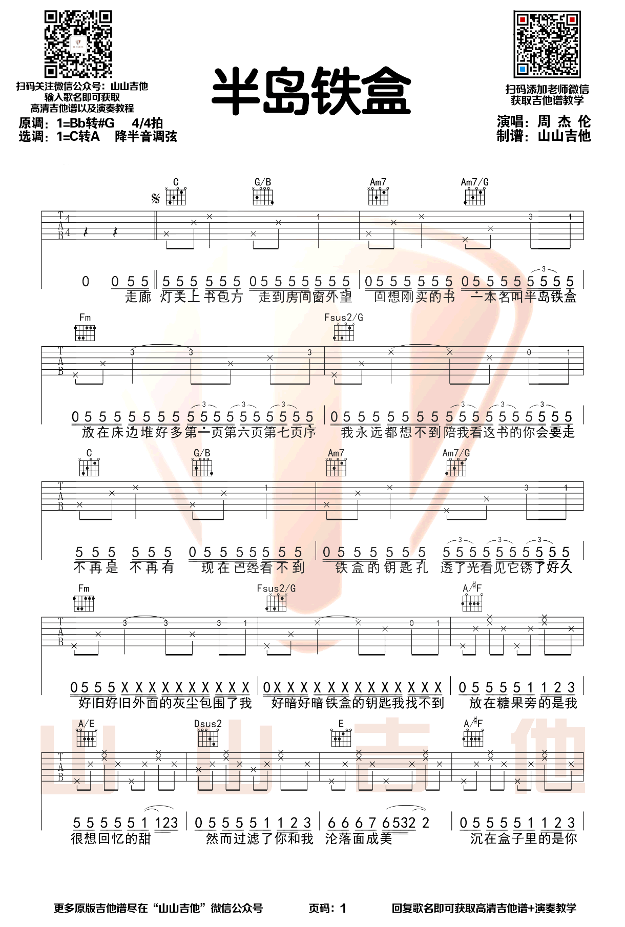 - 半岛铁盒吉他谱_周杰伦_超原版弹唱谱_吉他演示视频