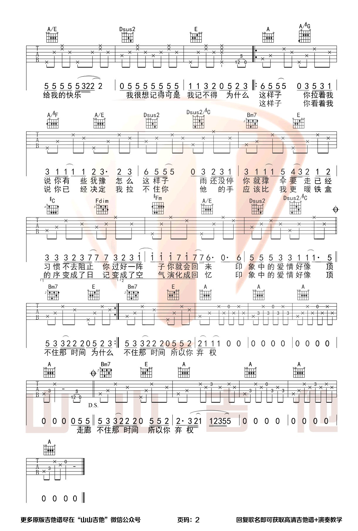 - 白月光与朱砂痣吉他谱_大籽_G调原版_弹唱六线谱