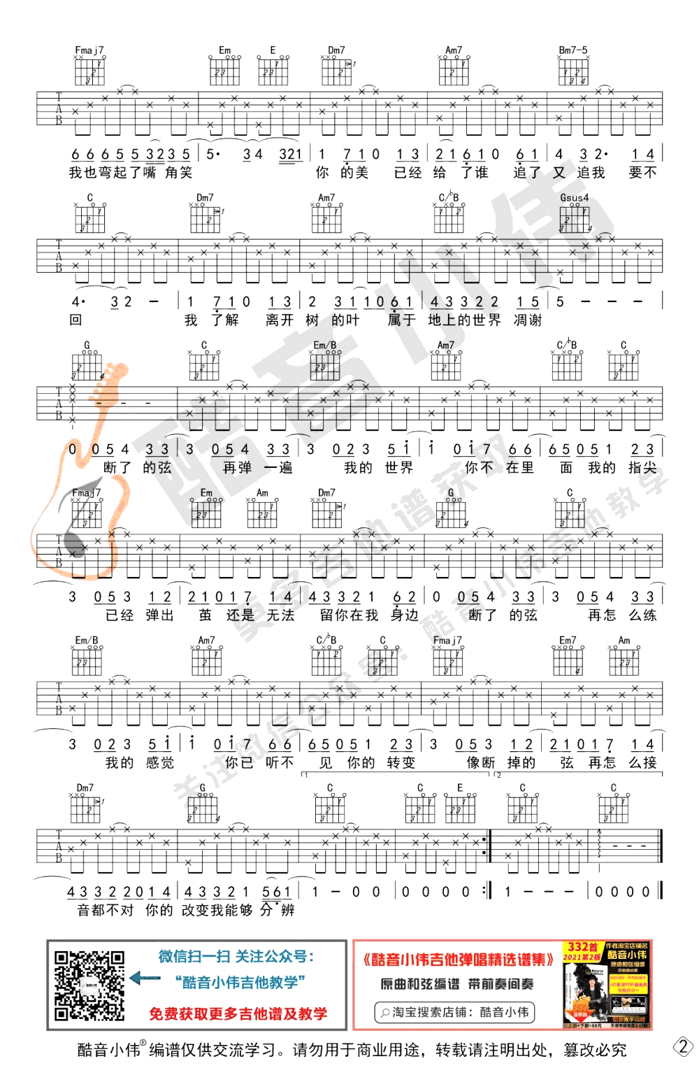- 爱人错过吉他谱_告五人_C调原版_弹唱六线谱