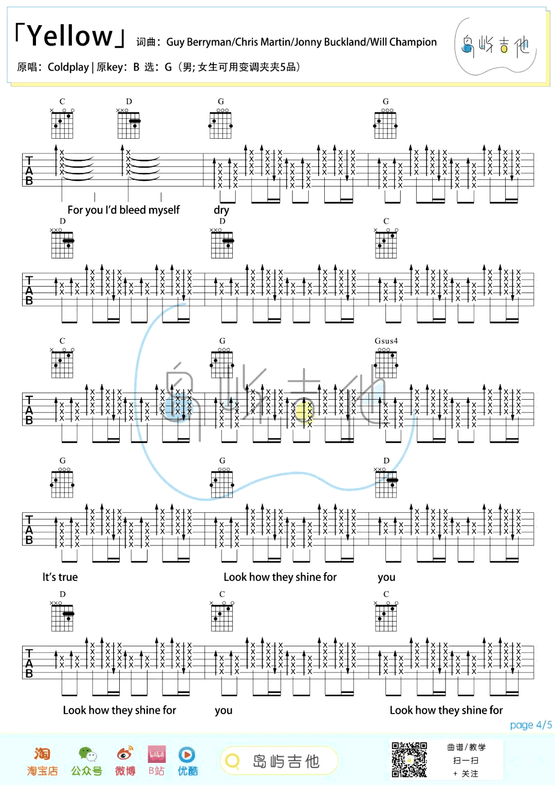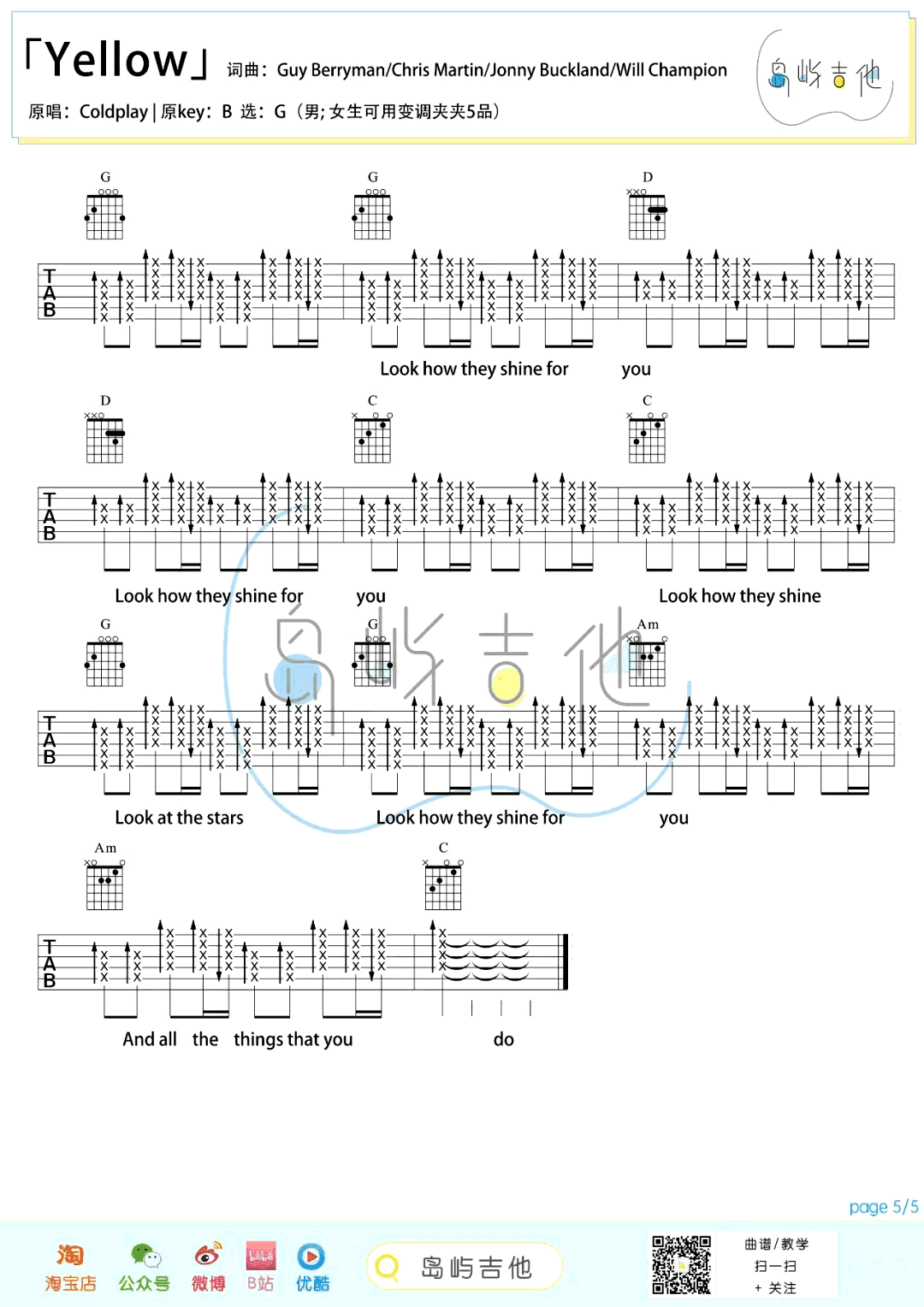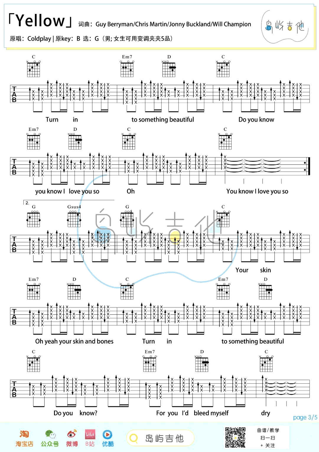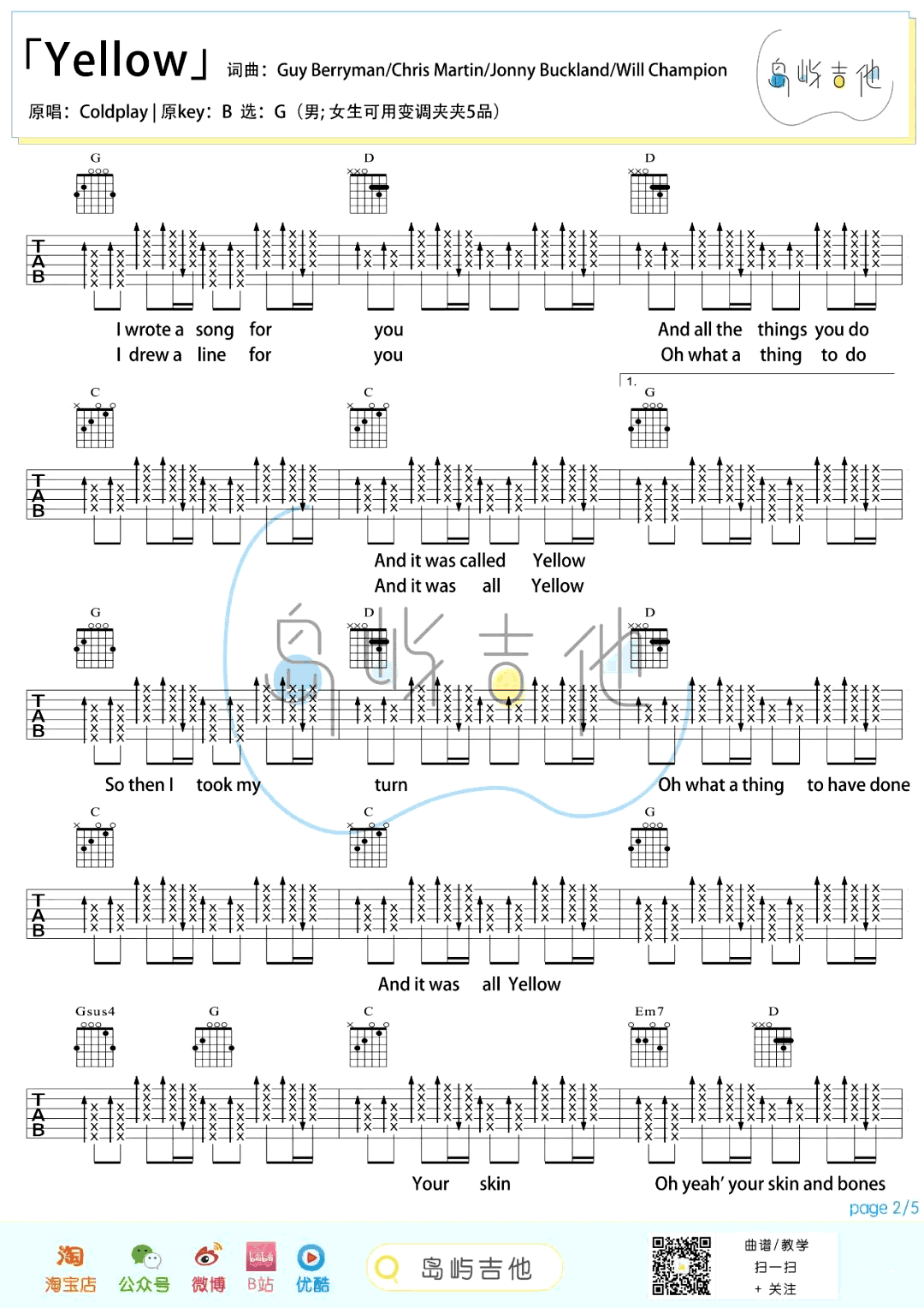 - Yellow吉他谱_Coldplay_G调弹唱谱_完整版六线谱