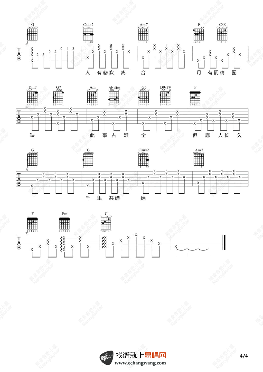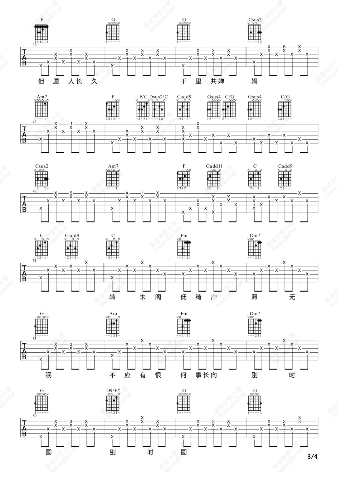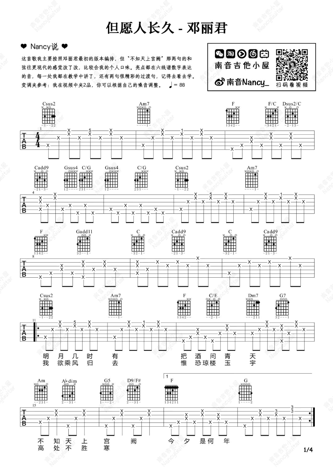 - 但愿人长久吉他谱_邓丽君_吉他弹唱教学视频