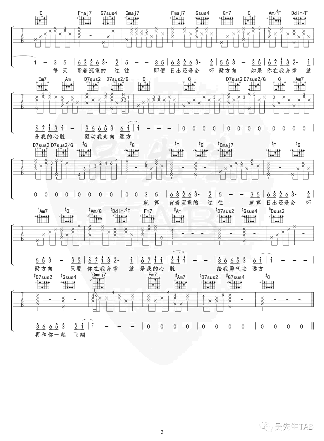 - 大风吹吉他谱_王赫野_G调弹唱谱_原版六线谱