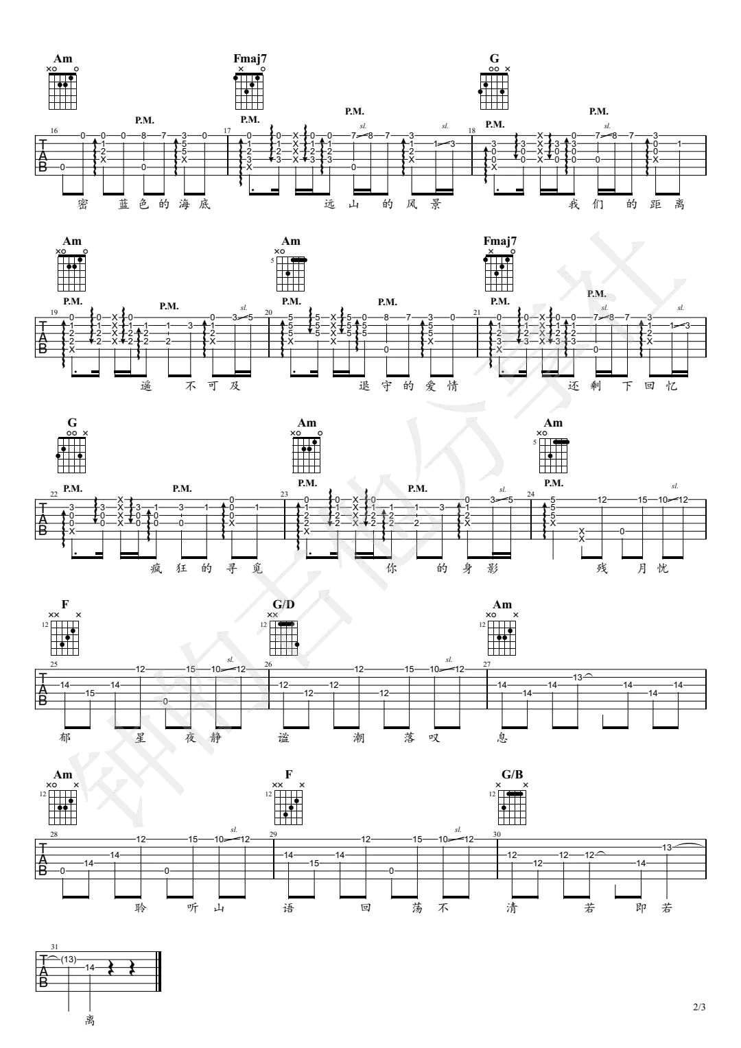 - 云与海吉他谱_阿YueYue_C调指法_原版弹唱谱