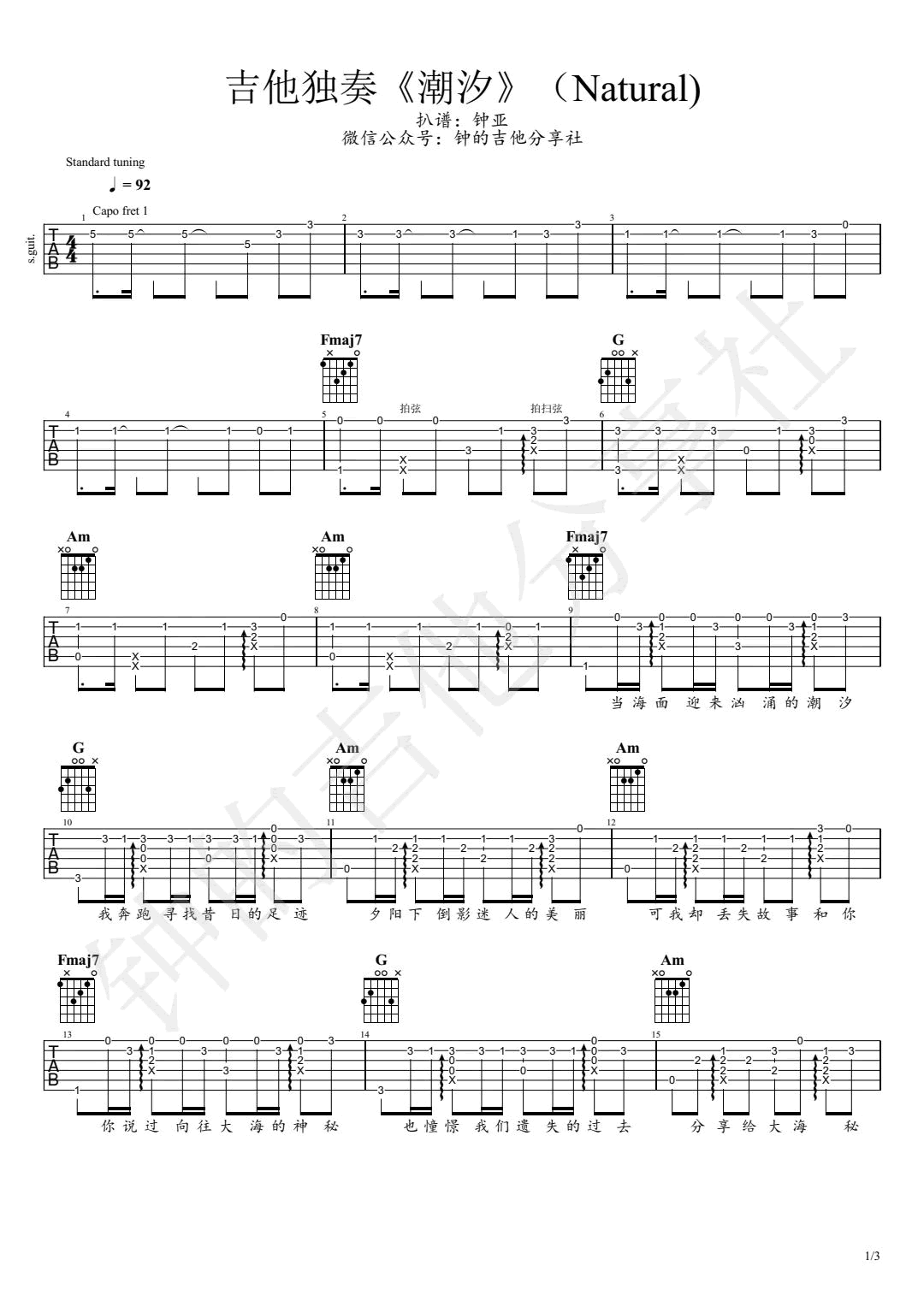 - 潮汐Natura指弹谱_安苏羽/傅梦彤_C调_指弹独奏视频
