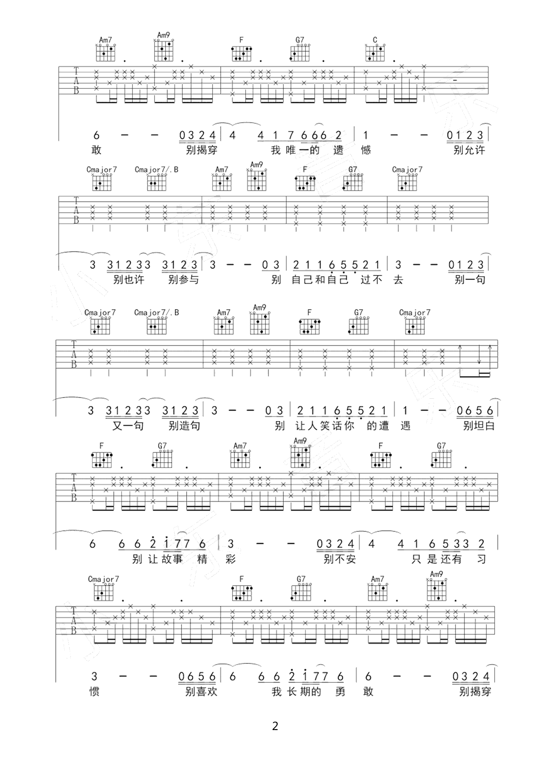 - 薛之谦《暧昧》指弹谱 C调 吉他独奏谱