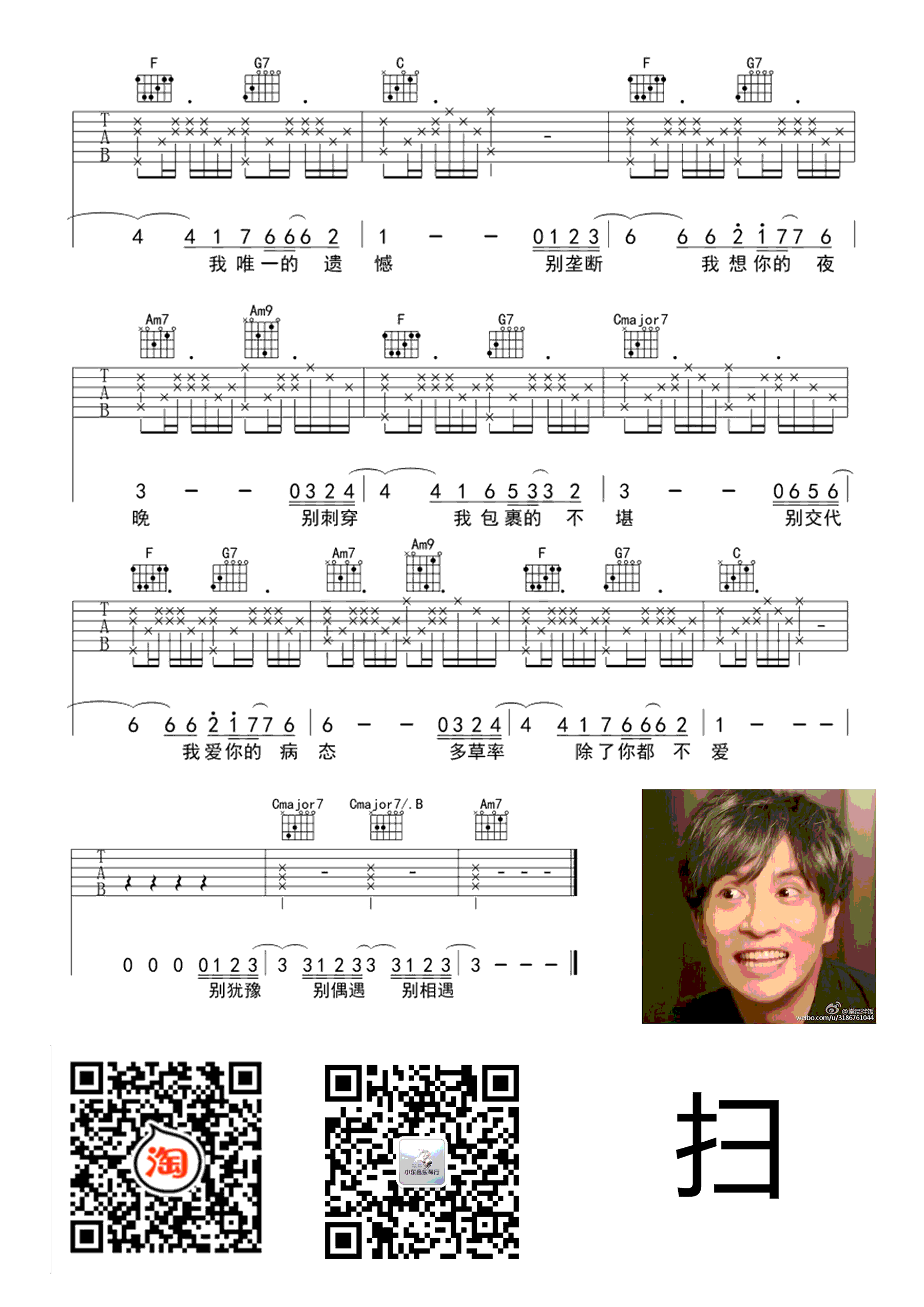 - 我害怕吉他谱 高清六线谱 薛之谦《我害怕》吉他弹唱教学