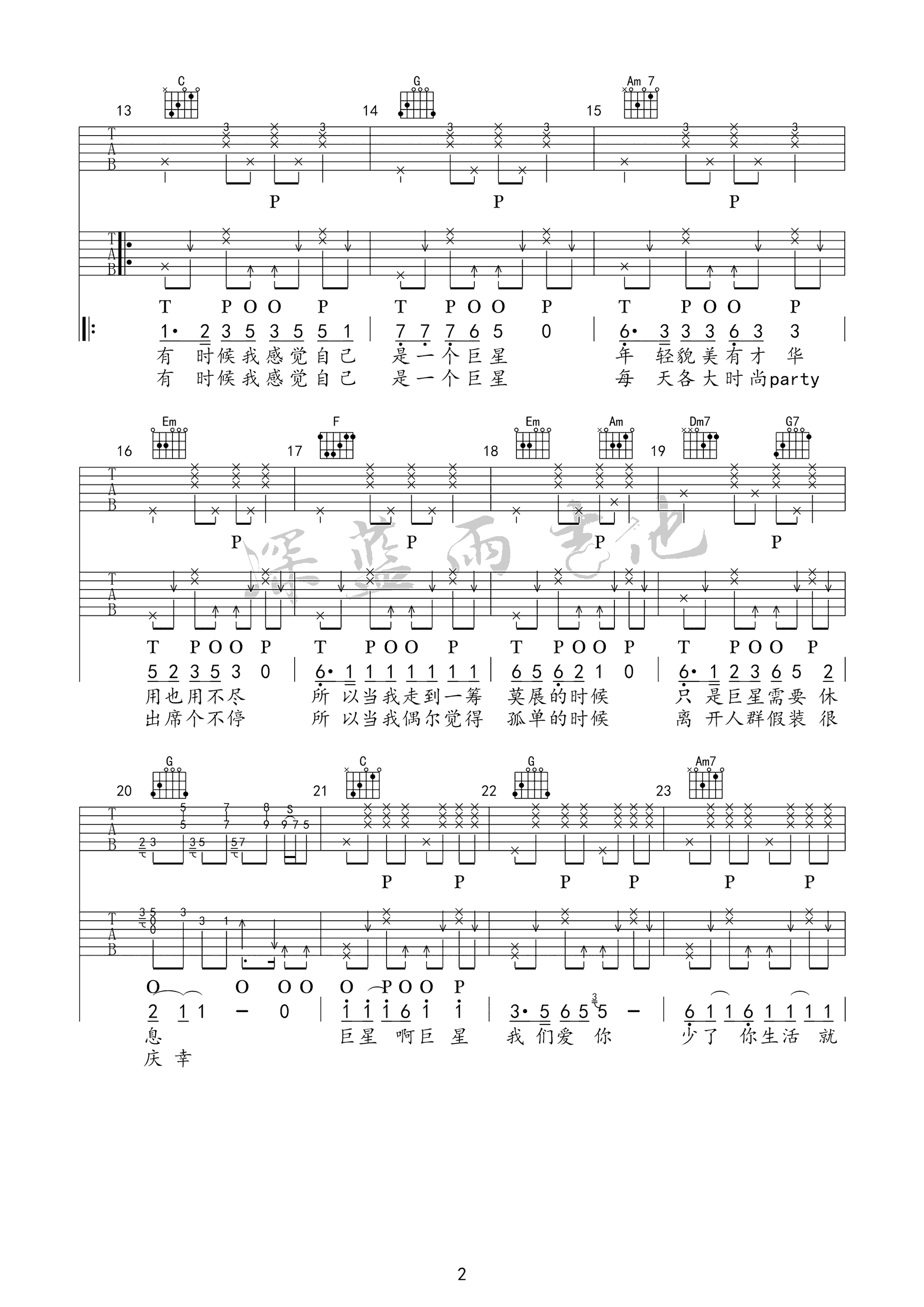 - 《等》吉他谱 毛不易 高清弹唱谱 《等》六线谱