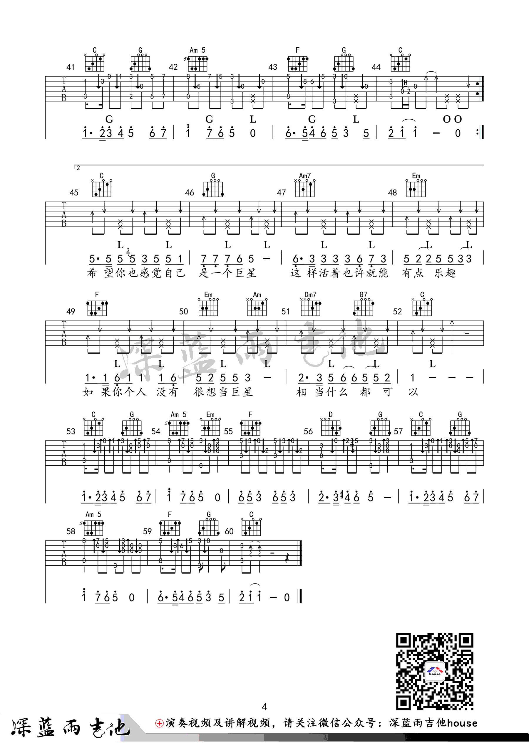 - 二零三吉他谱 毛不易《203》六线谱 G调弹唱谱