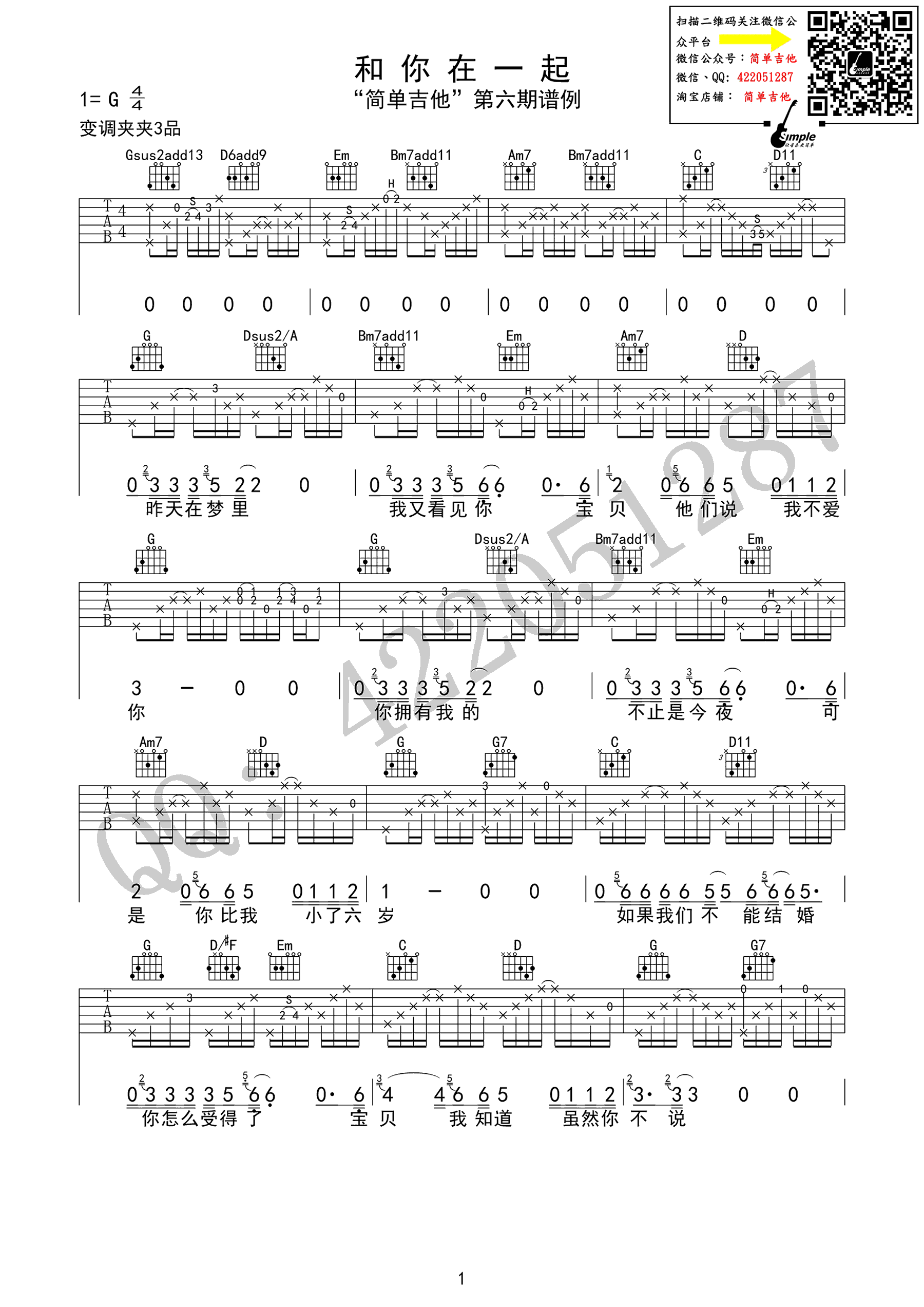 - 和你在一起吉他谱 李志 G调六线谱 吉他教学视频