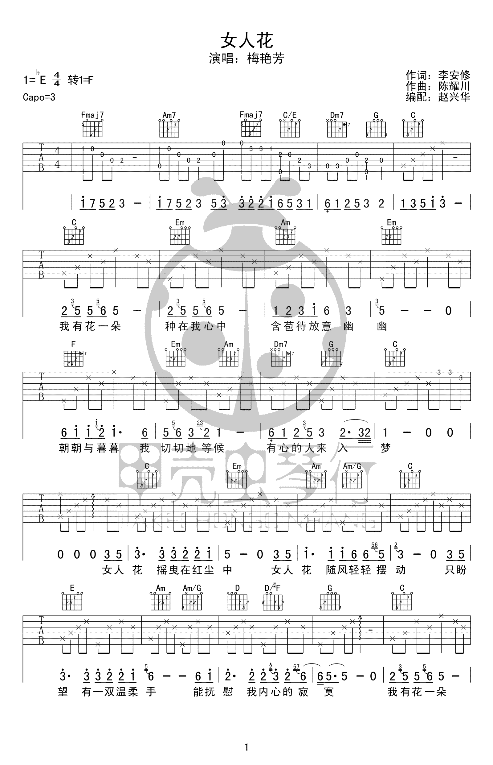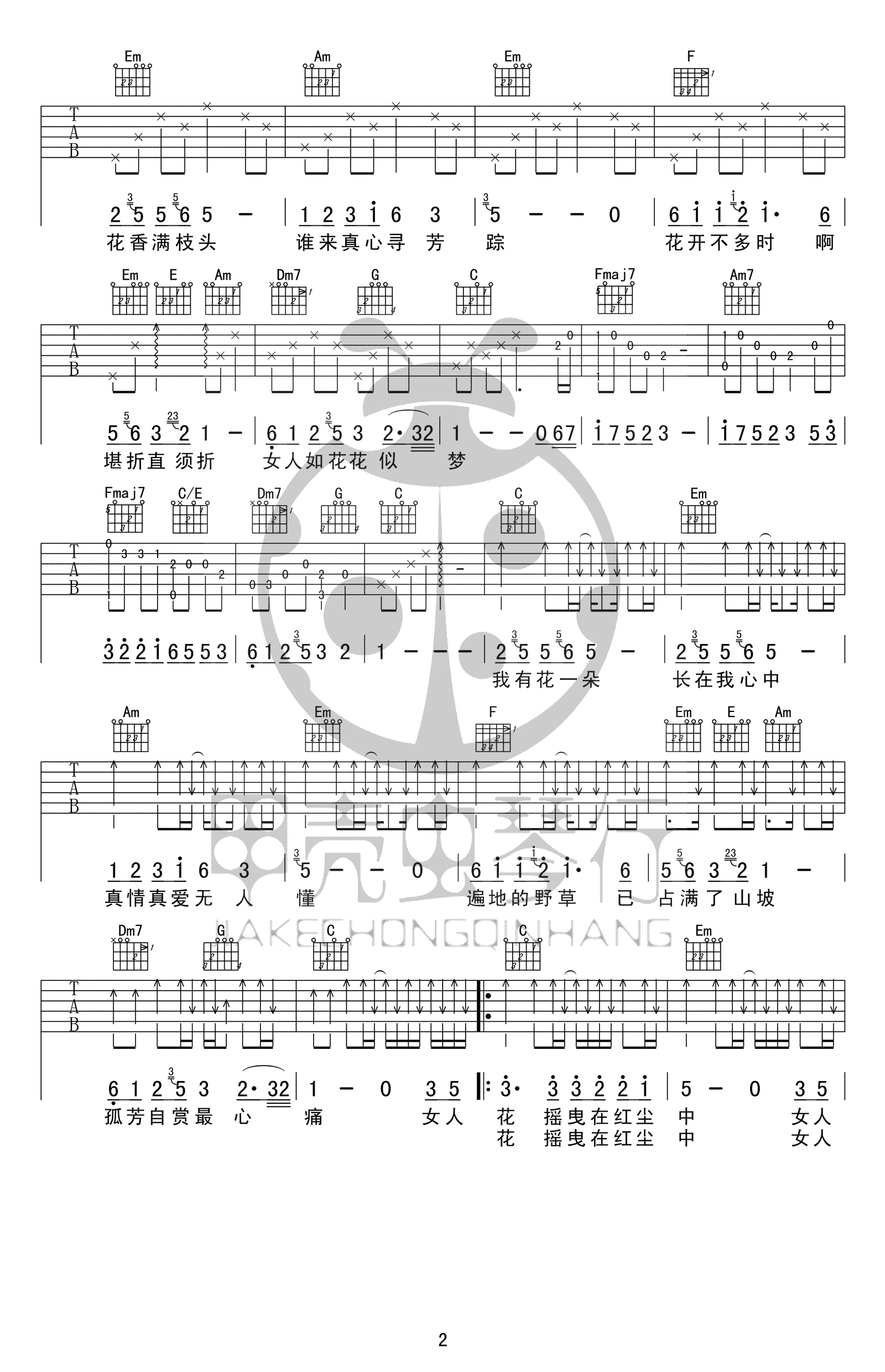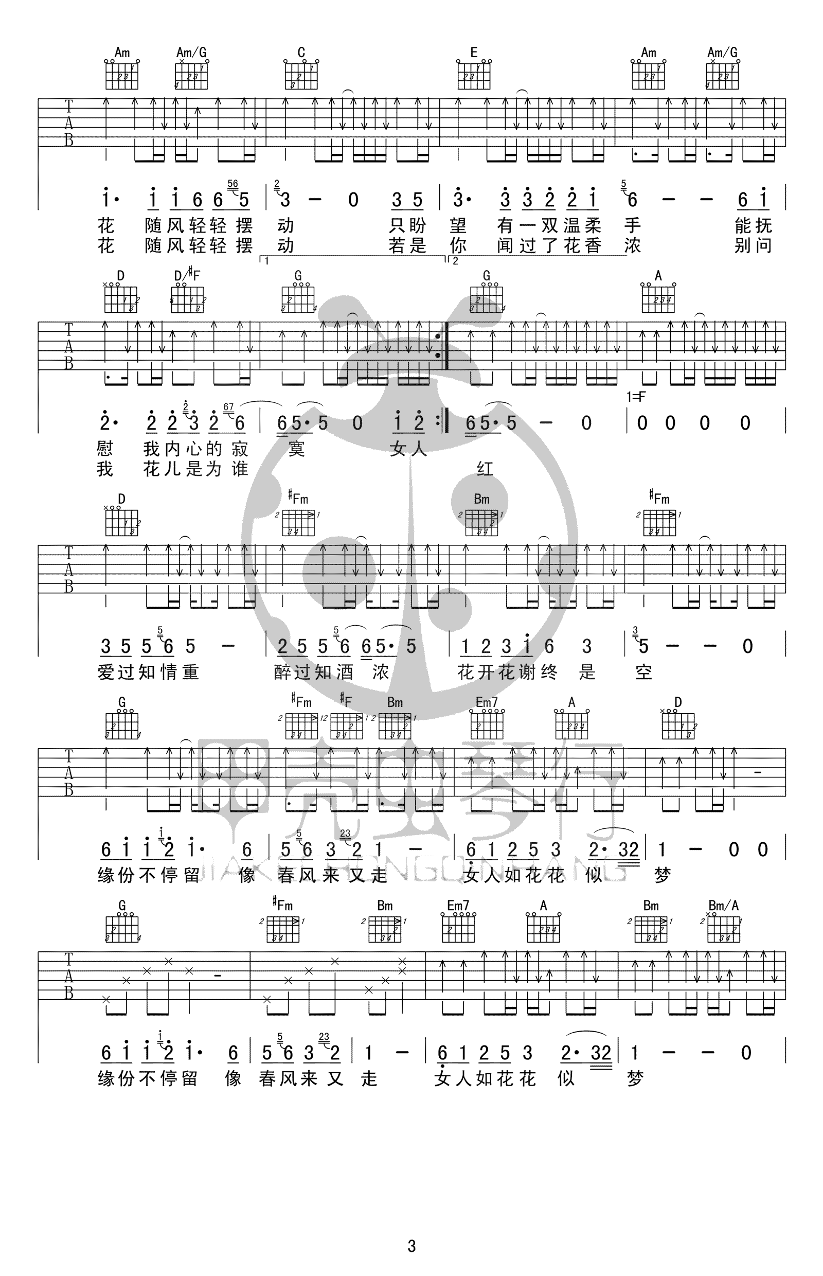 女人花 歌词 词:李安修 曲:陈耀川 编曲:Ricky Ho 我有花一朵 种在我心中 含苞待放意幽幽 朝朝与暮暮 我切切地等候 有心的人来入梦 女人花 摇曳在红尘中 女人花 随风轻轻摆动 只盼望 有一双温柔手 能抚慰 我内心的寂寞 我有花一朵 花香满枝头 谁来真心寻芳踪 花开不多时 堪折直须折 女人如花花似梦 我有花一朵 长在我心中 真情真爱无人懂 遍地的野草 已占满了山坡 孤芳自赏最心痛 女人花 摇曳在红尘中 女人花 随风轻轻摆动 只盼望 有一双温柔手 能抚慰 我内心的寂寞 女人花 摇曳在红尘中 女人花 随风轻轻摆动 若是你 闻过了花香浓 别问我 花儿是为谁红 爱过知情重 醉过知酒浓 花开花谢终是空 缘分不停留 像春风来又走 女人如花花似梦 缘分不停留 像春风来又走 女人如花花似梦 女人如花花似梦