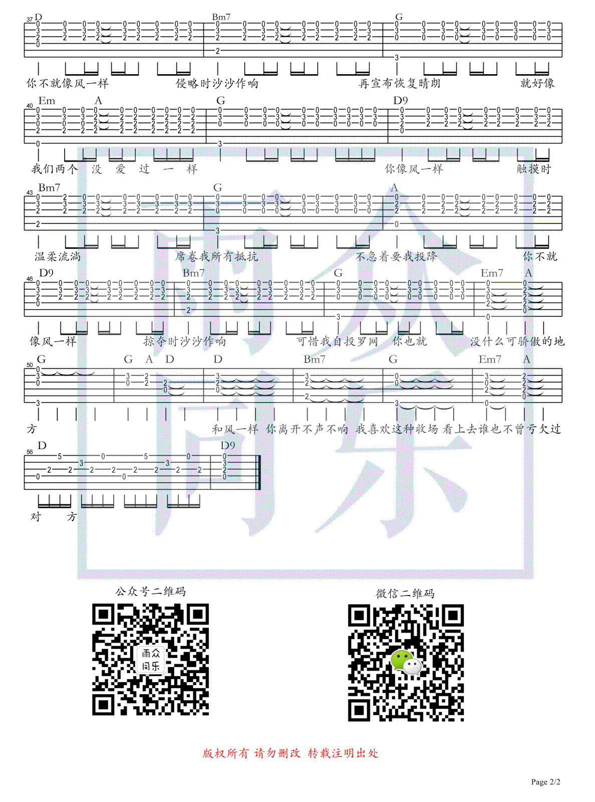 - 薛之谦《暧昧》吉他谱 弹唱谱高清版 G调指法六线谱