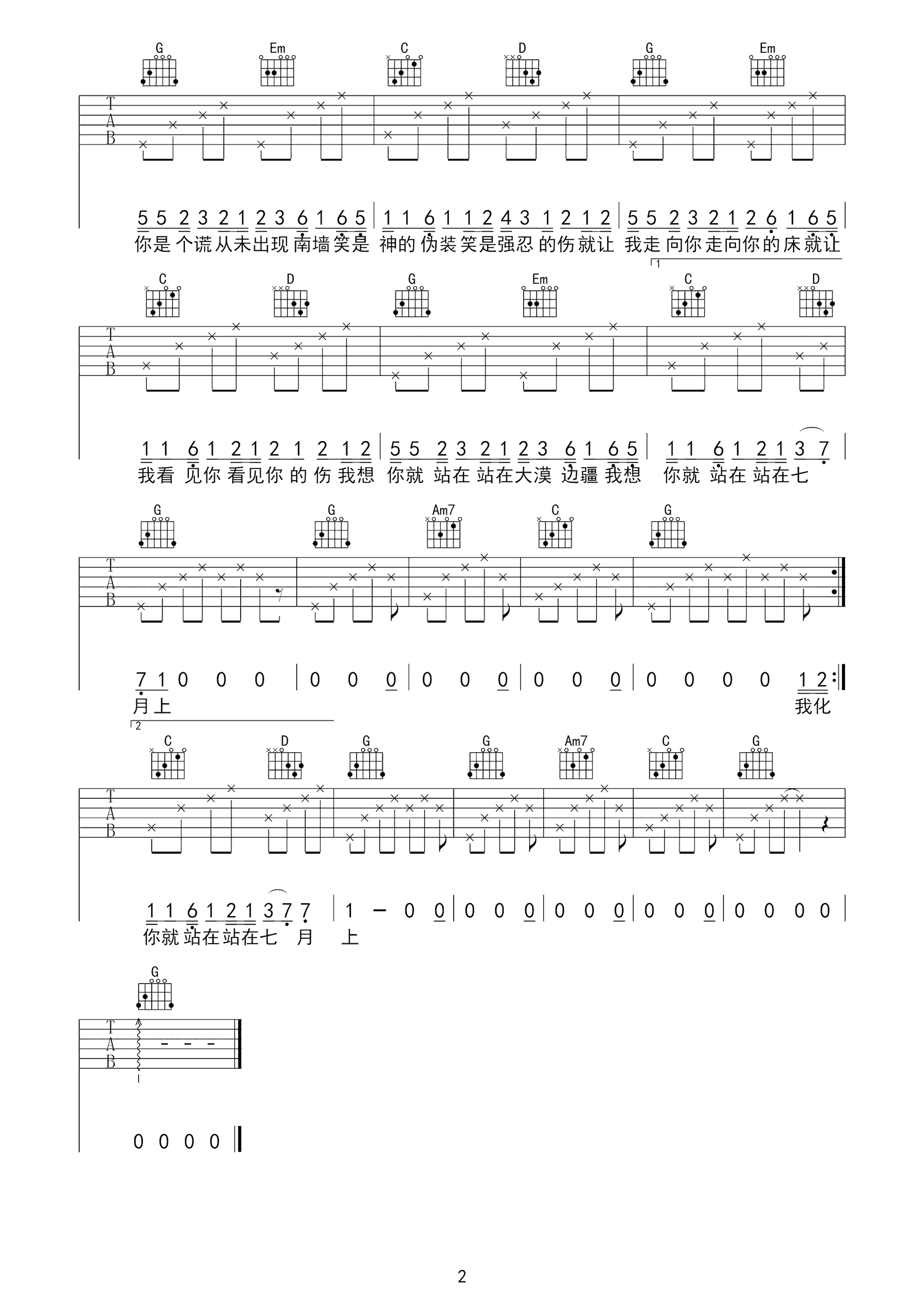 - 花落知多少吉他谱 倪健 G调六线谱 高清弹唱谱