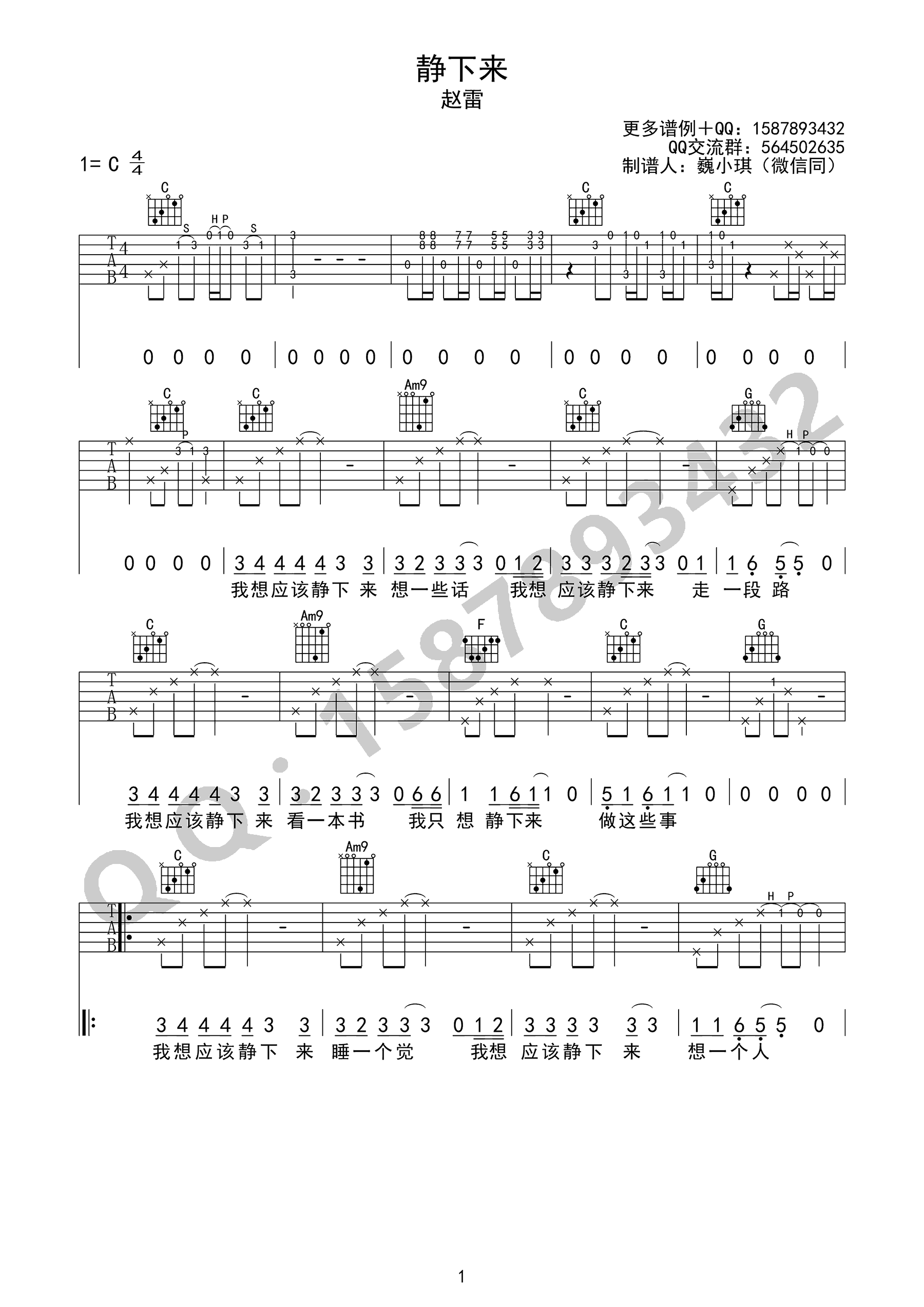 - 赵雷 小屋吉他谱 C调高清弹唱谱 完整版图片谱
