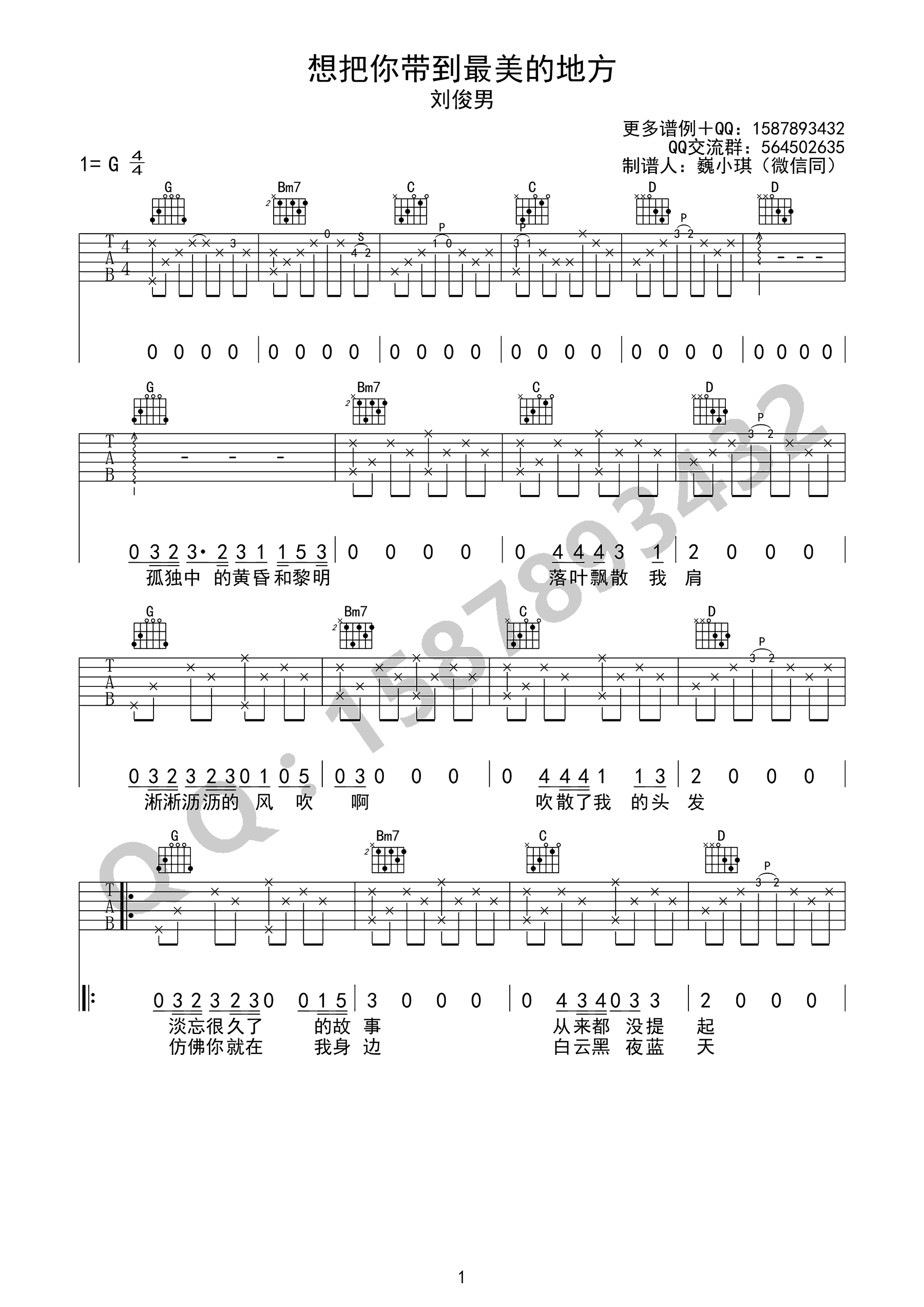 - 村庄吉他谱 小皮 G调弹唱谱 高清图片谱