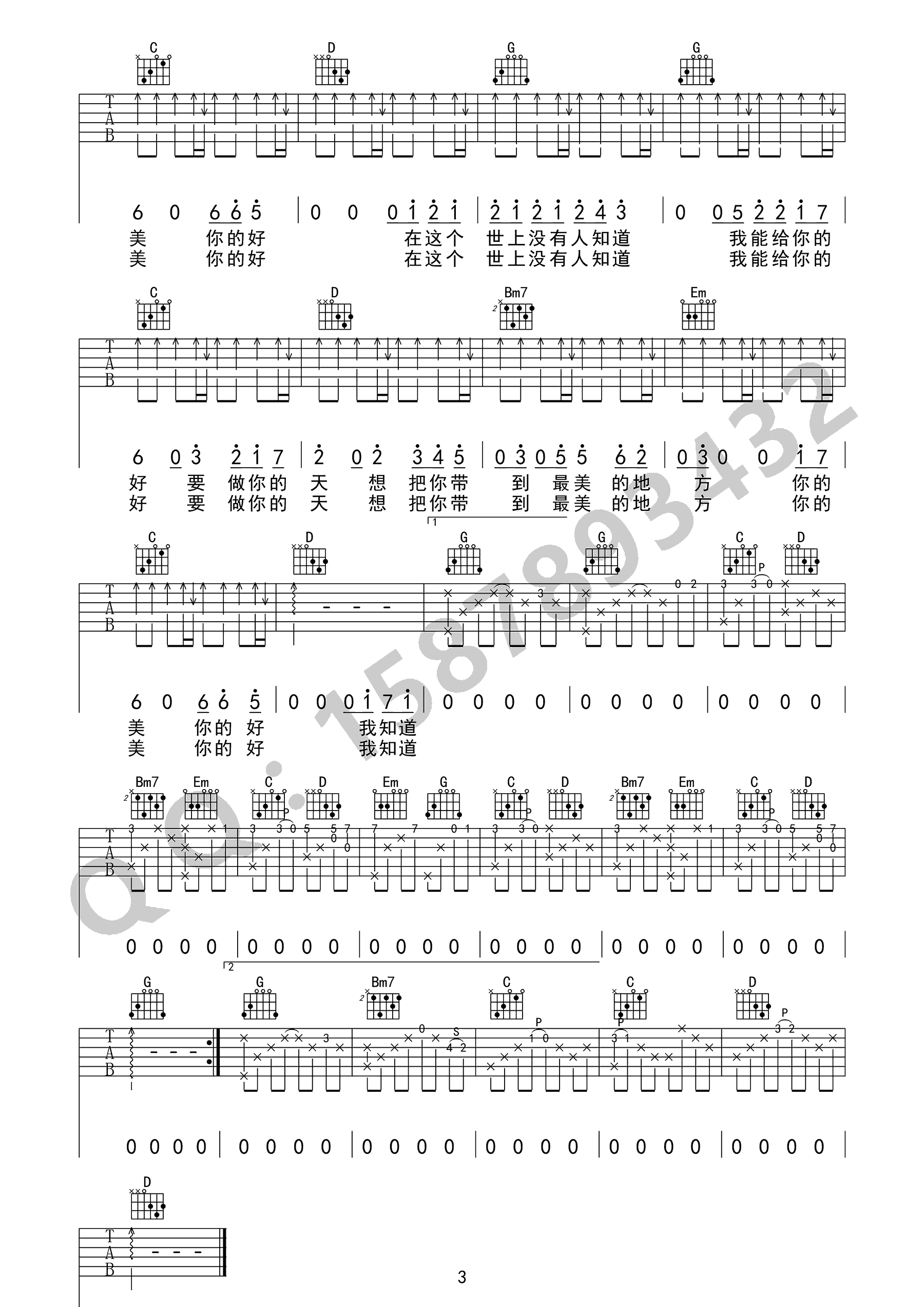- 佳佳吉他谱 张宴铭 G调弹唱谱 《佳佳》六线谱