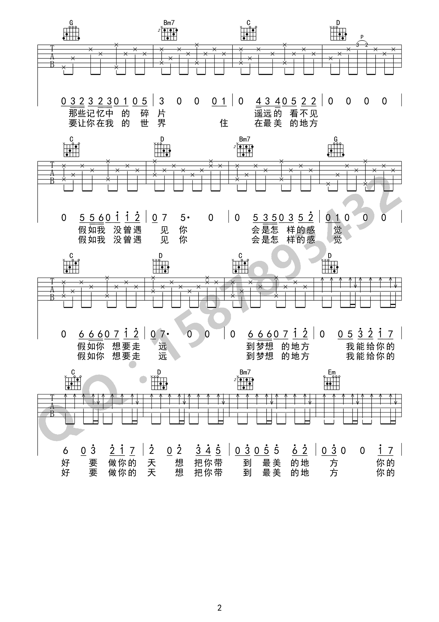 - 长岛吉他谱 花粥《长岛》六线谱 G调弹唱谱简单版
