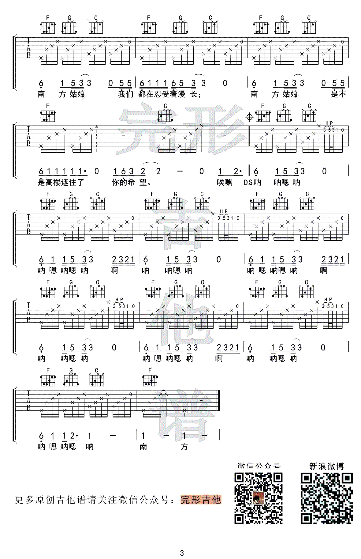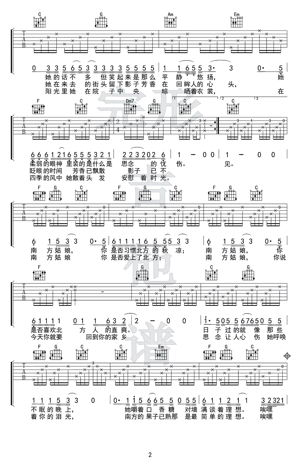 - 南方姑娘吉他谱 赵雷 C调六线谱 果木浪子版 吉他教学视频