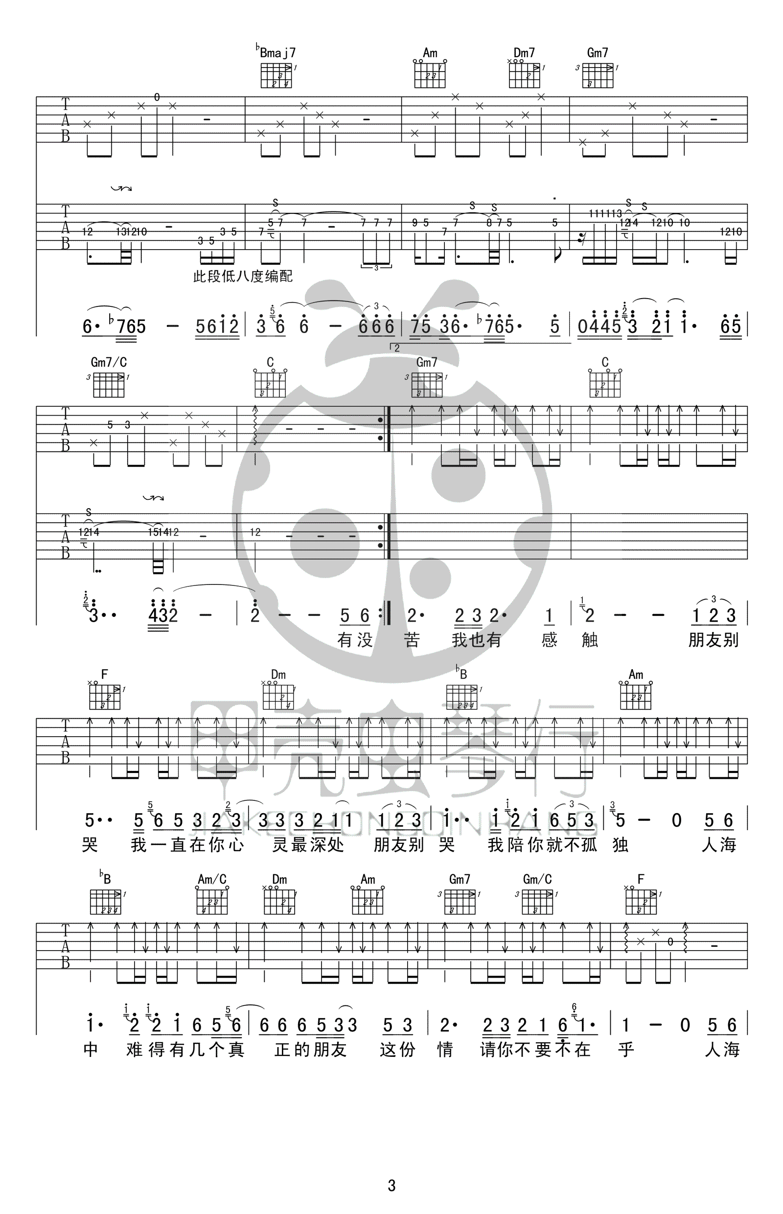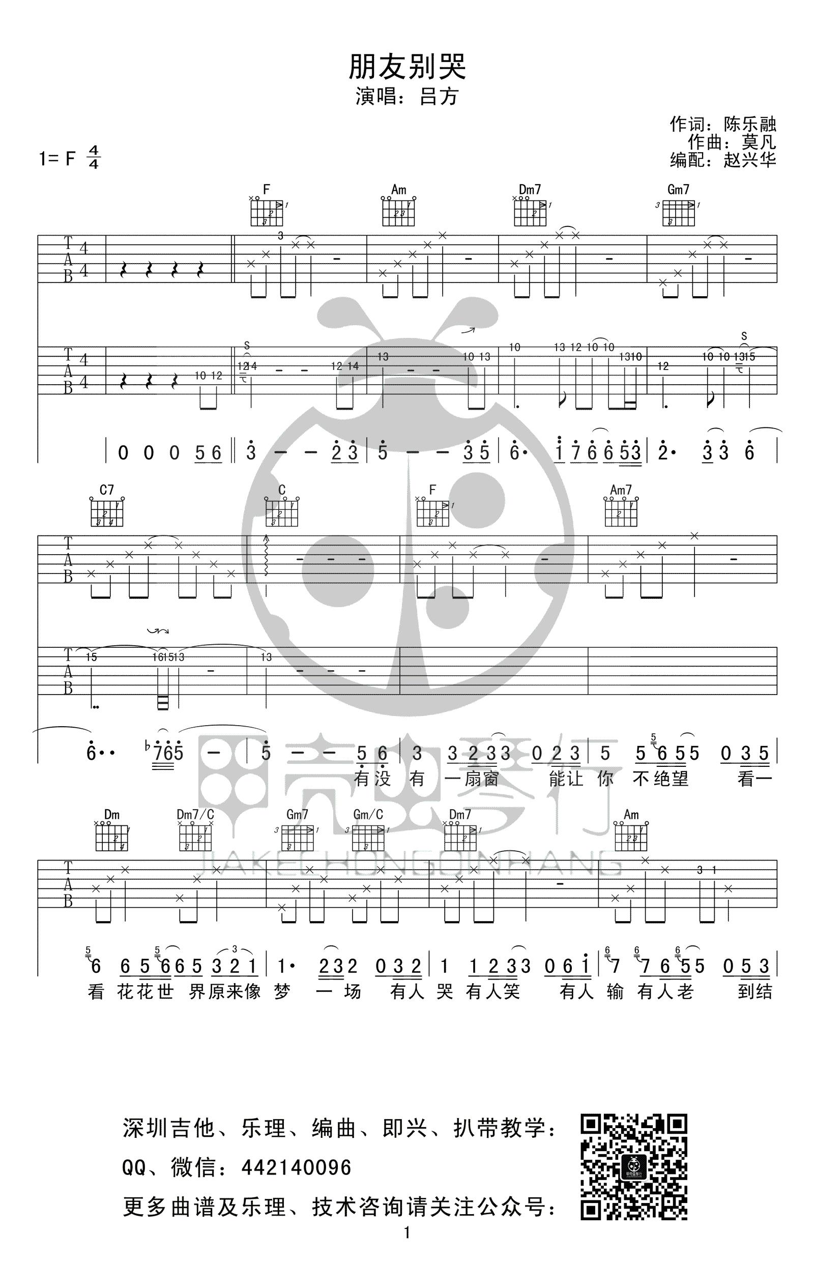 朋友别哭 歌词 词:陈乐融 曲:莫凡 编曲:Belinda Foo 有没有一扇窗 能让你不绝望 看一看花花世界 原来像梦一场 有人哭 有人笑 有人输 有人老 到结局还不是一样 有没有一种爱 能让你不受伤 这些年堆积多少 对你的知心话 什么酒醒不了 什么痛忘不掉 向前走 就不可能回头望 朋友别哭 我依然是你心灵的归宿 朋友别哭 要相信自己的路 红尘中 有太多茫然痴心的追逐 你的苦我也有感触 有没有一种爱 能让你不受伤 这些年堆积多少 对你的知心话 什么酒醒不了 什么痛忘不掉 向前走 就不可能回头望 朋友别哭 我依然是你心灵的归宿 朋友别哭 要相信自己的路 红尘中有太多茫然痴心的追逐 你的苦 我也有感触 朋友别哭 我一直在你心灵最深处 朋友别哭 我陪你就不孤独 人海中 难得有几个真正的朋友 这份情 请你不要不在乎 人海中 难得有几个真正的朋友 这份情 请你不要不在乎