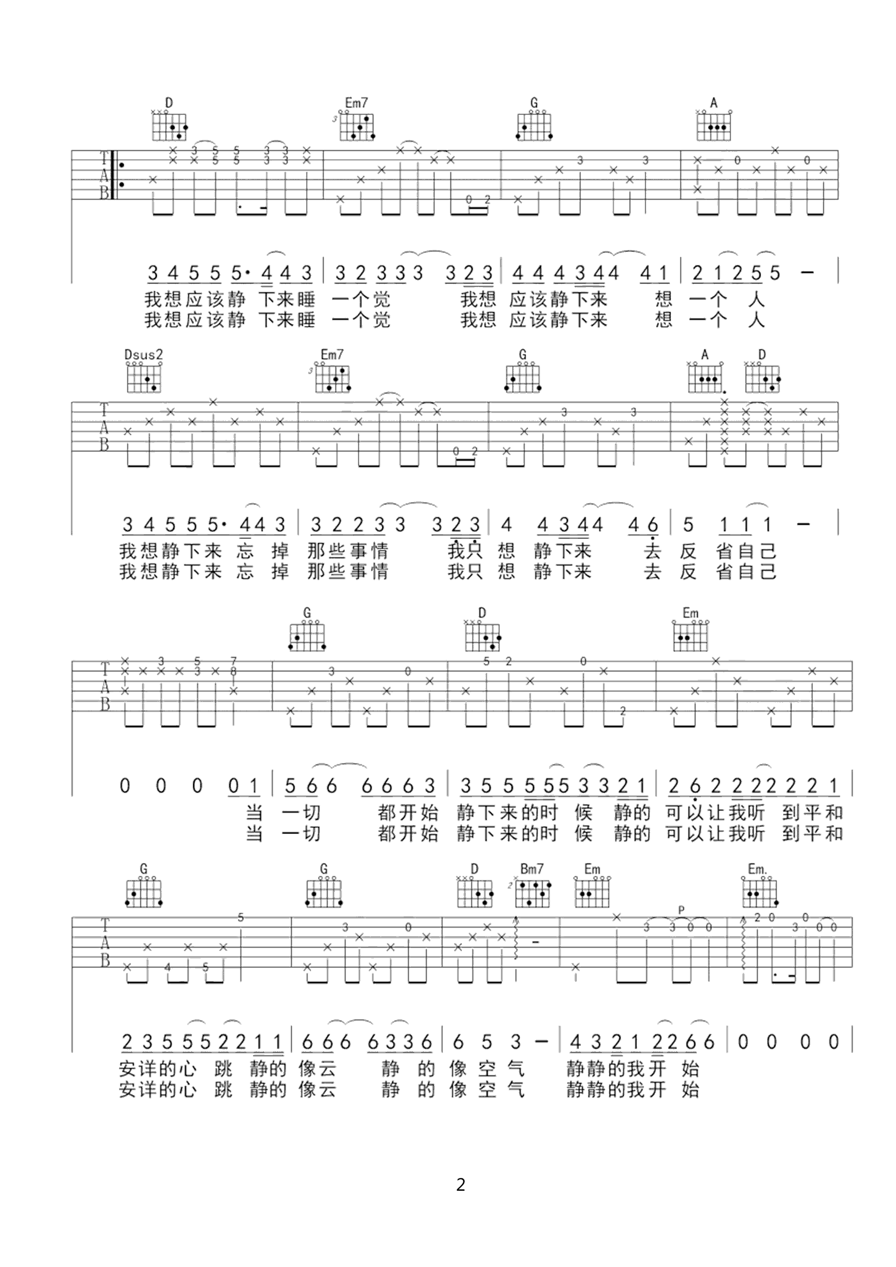 - 静下来吉他谱 赵雷 C调弹唱谱 六线谱高清版