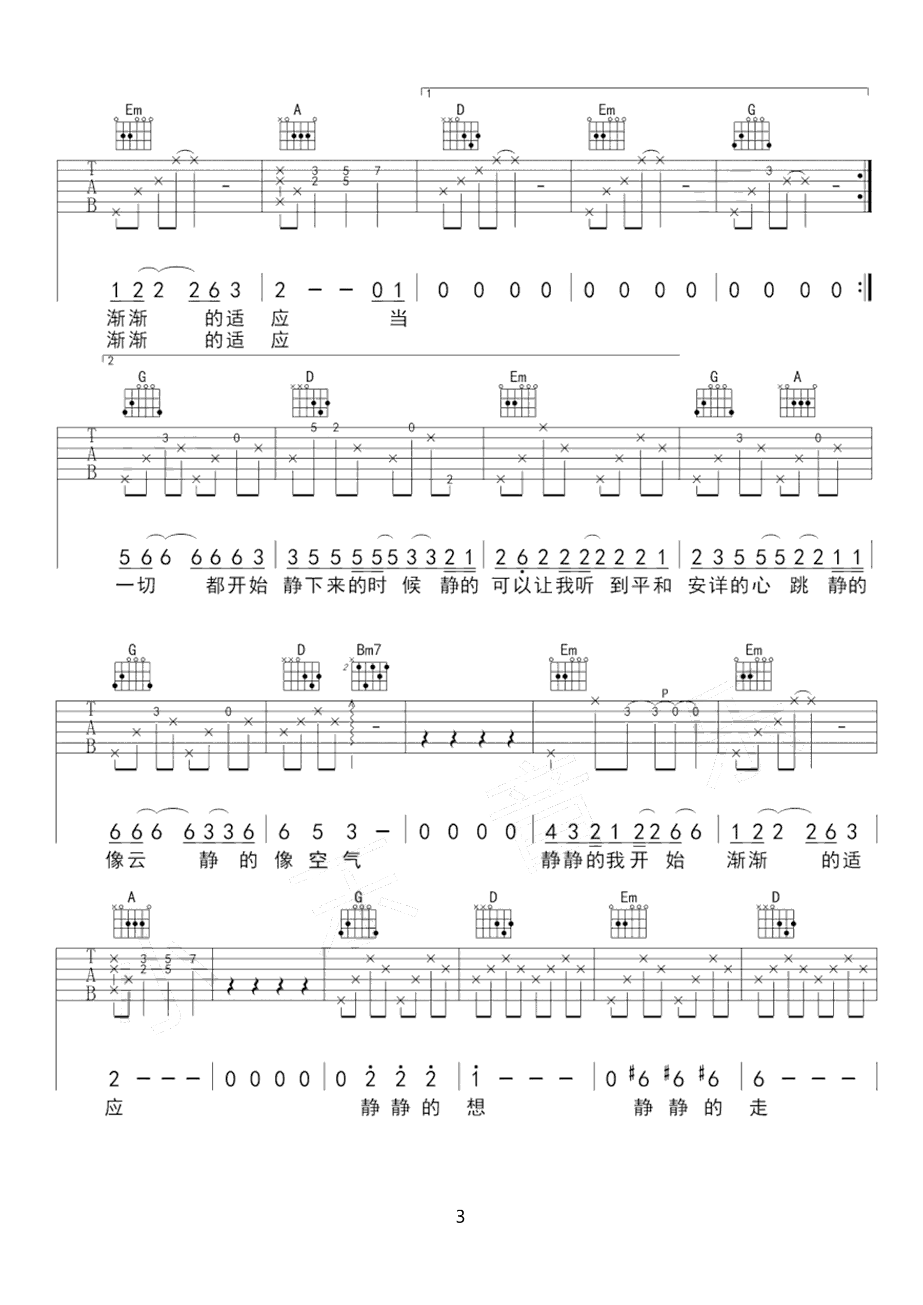 - 北京的冬天吉他谱 赵雷 扫弦版弹唱谱 高清六线谱