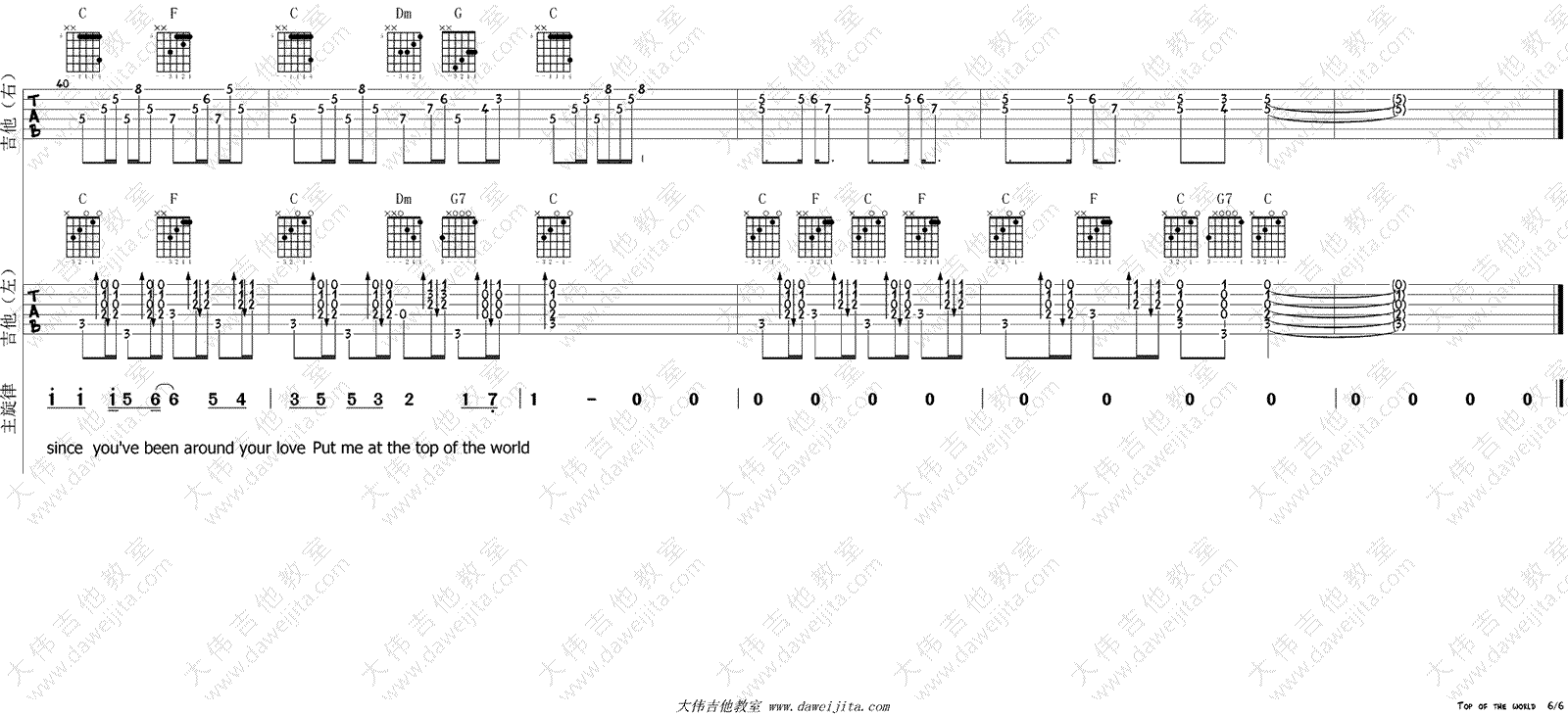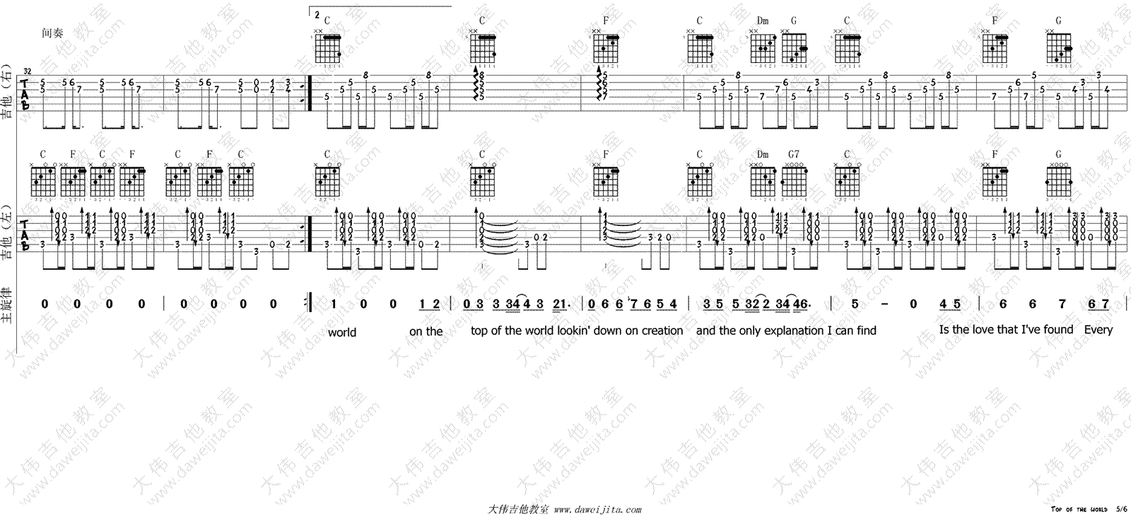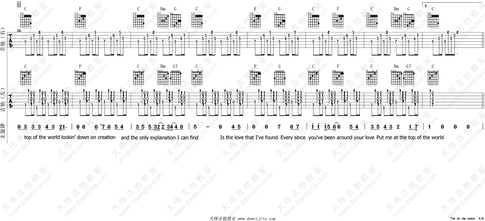 Top Of The World吉他谱 C调吉他谱 世界之巅吉他演示视频