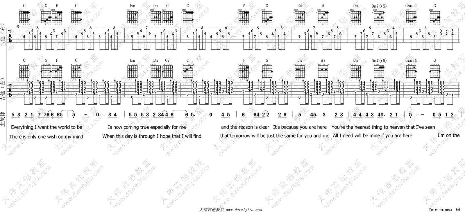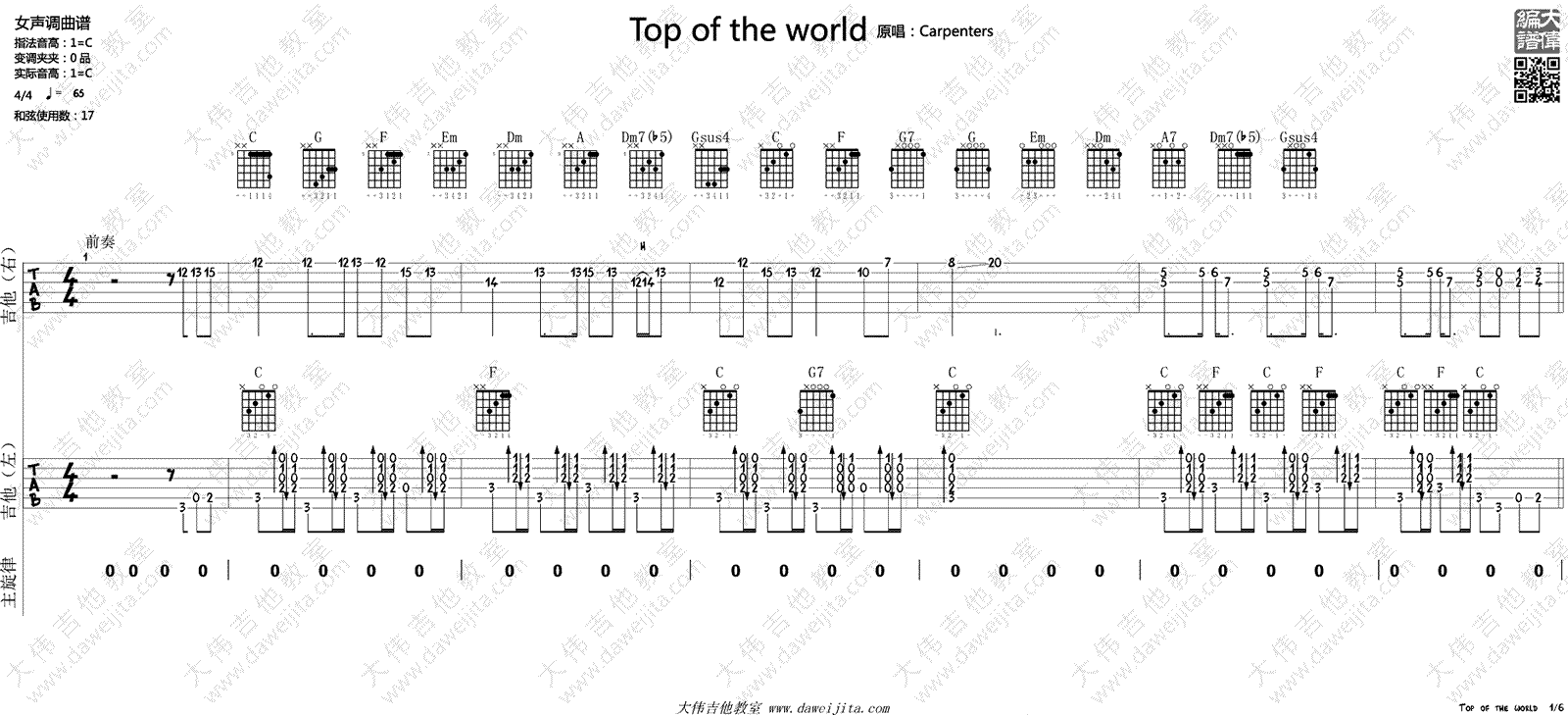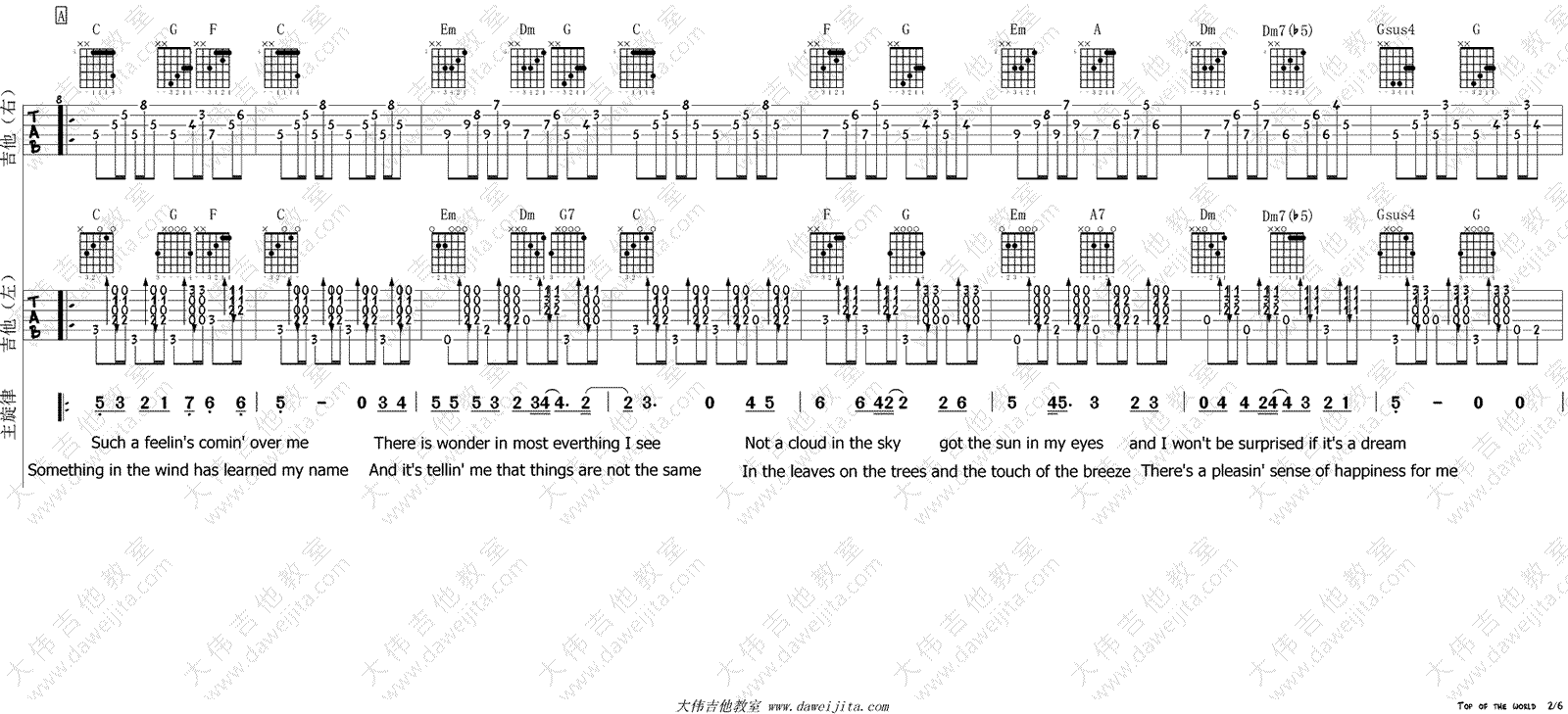 Top Of The World吉他谱 C调吉他谱 世界之巅吉他演示视频