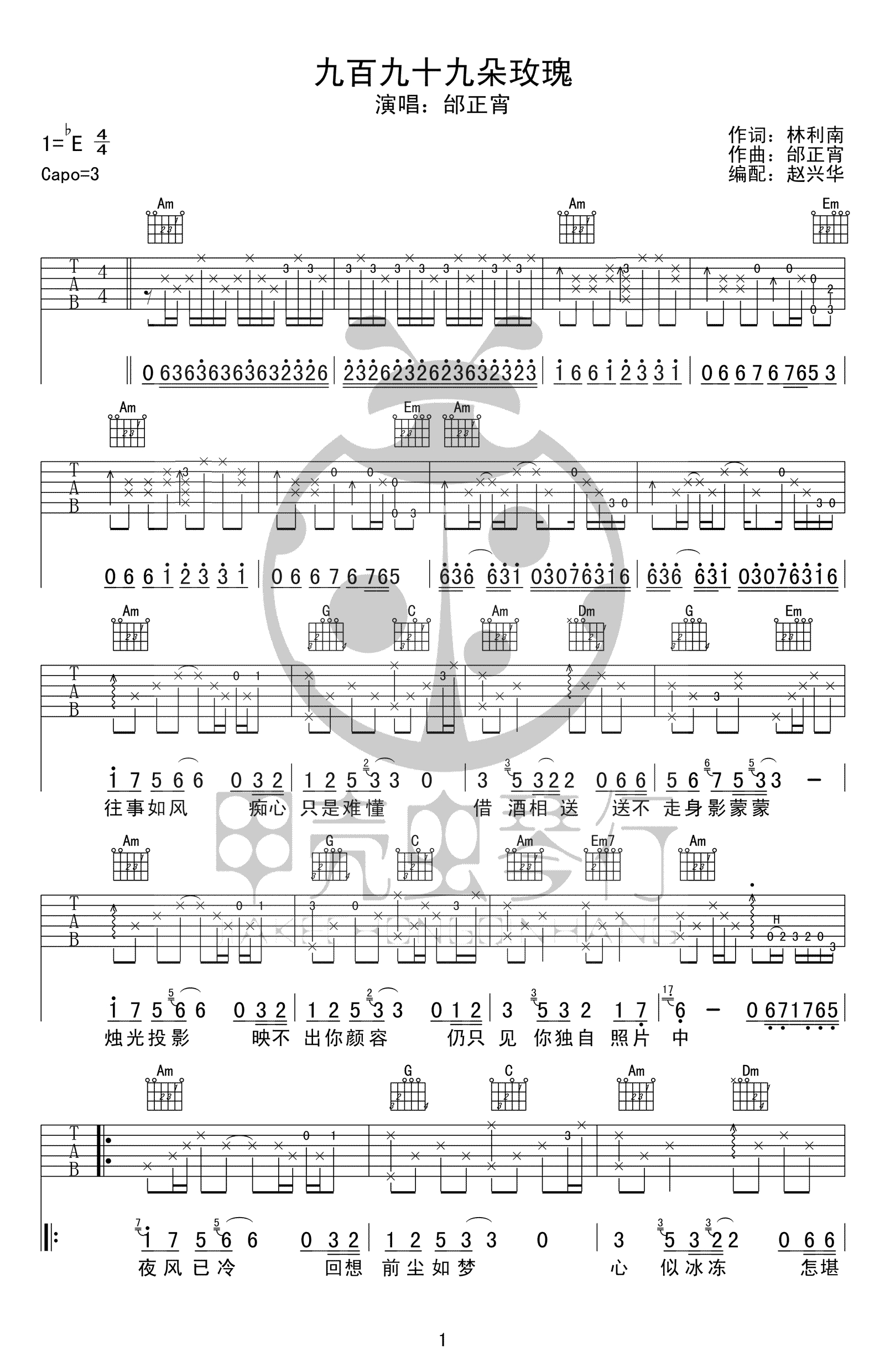 - 一百种孤独的理由吉他谱 郭美美 吉他弹唱谱