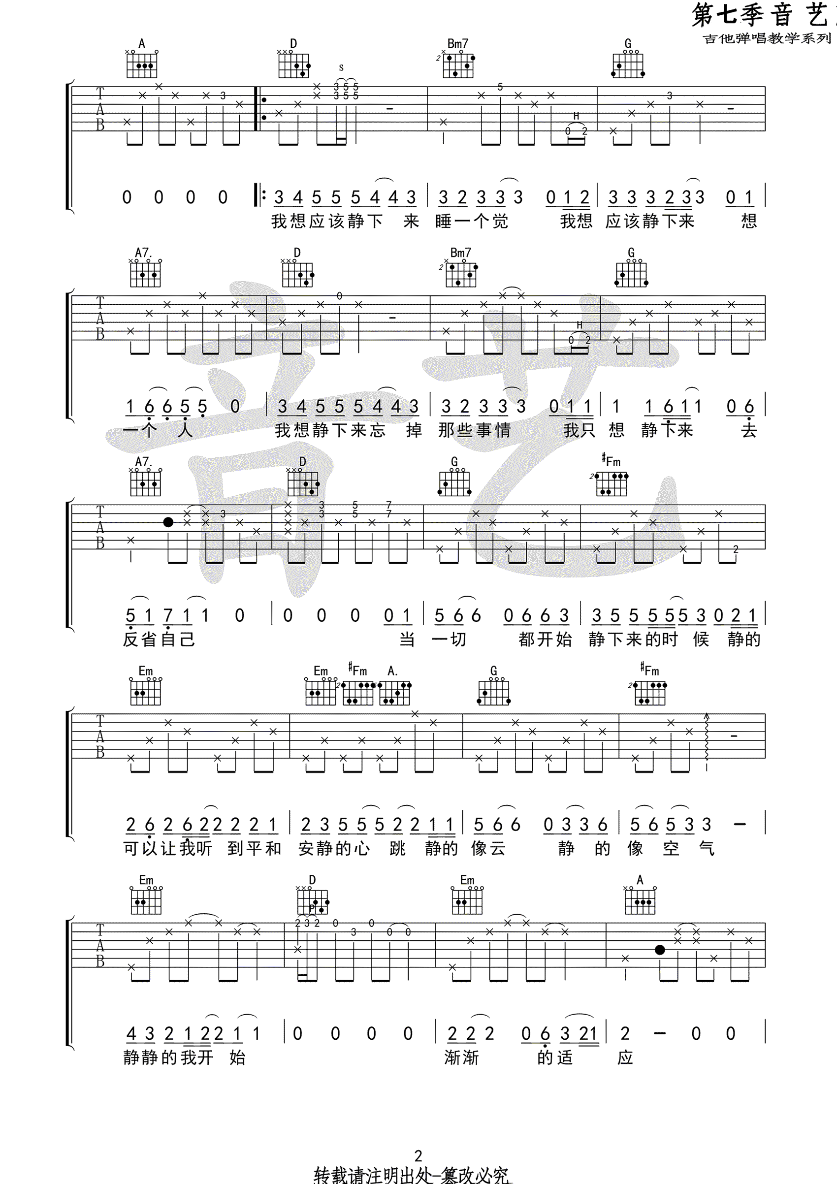 - 静下来吉他谱 赵雷 D调弹唱谱 《静下来》六线谱