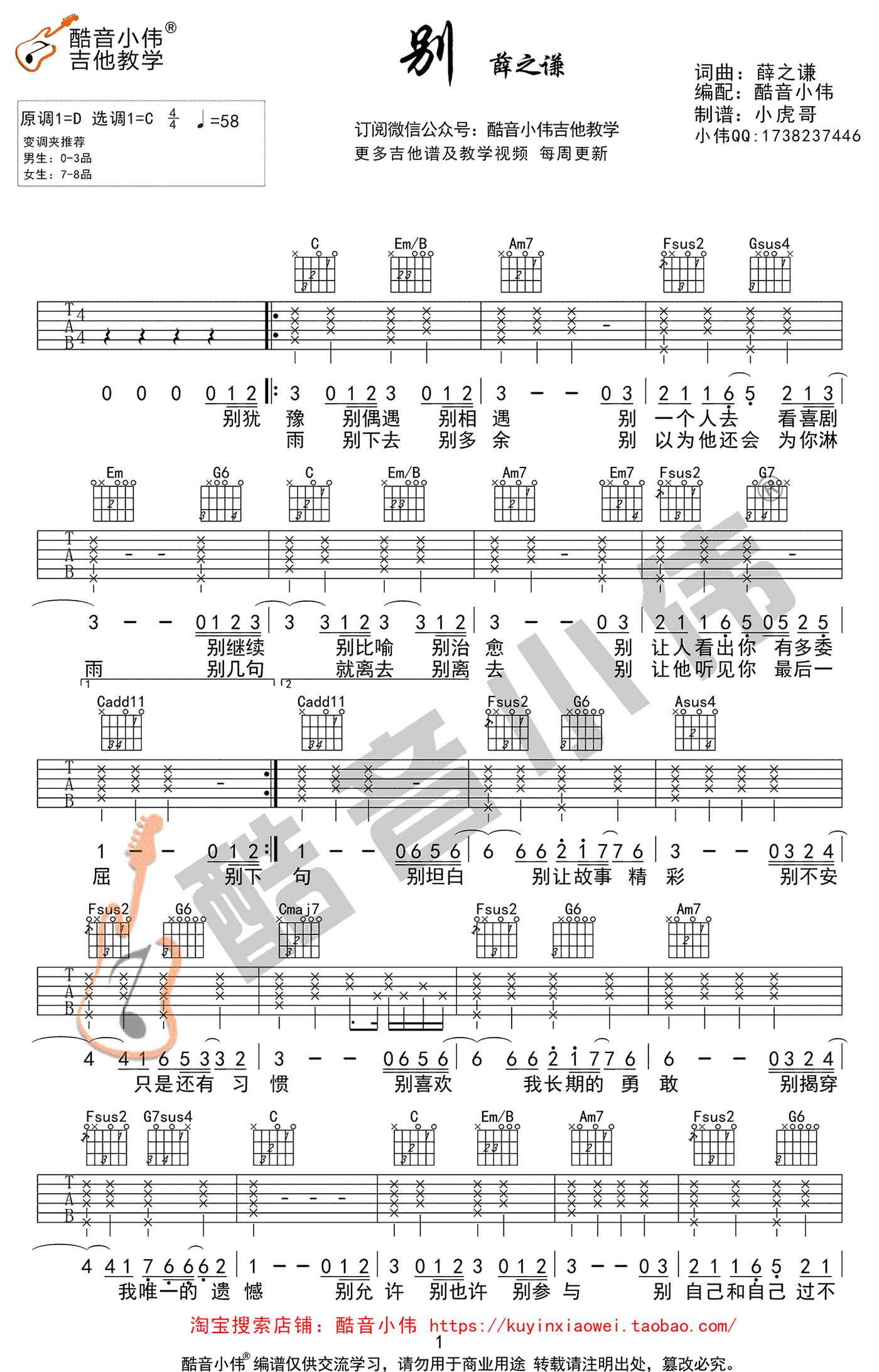 - 别吉他谱 薛之谦《别》六线谱 高清弹唱谱