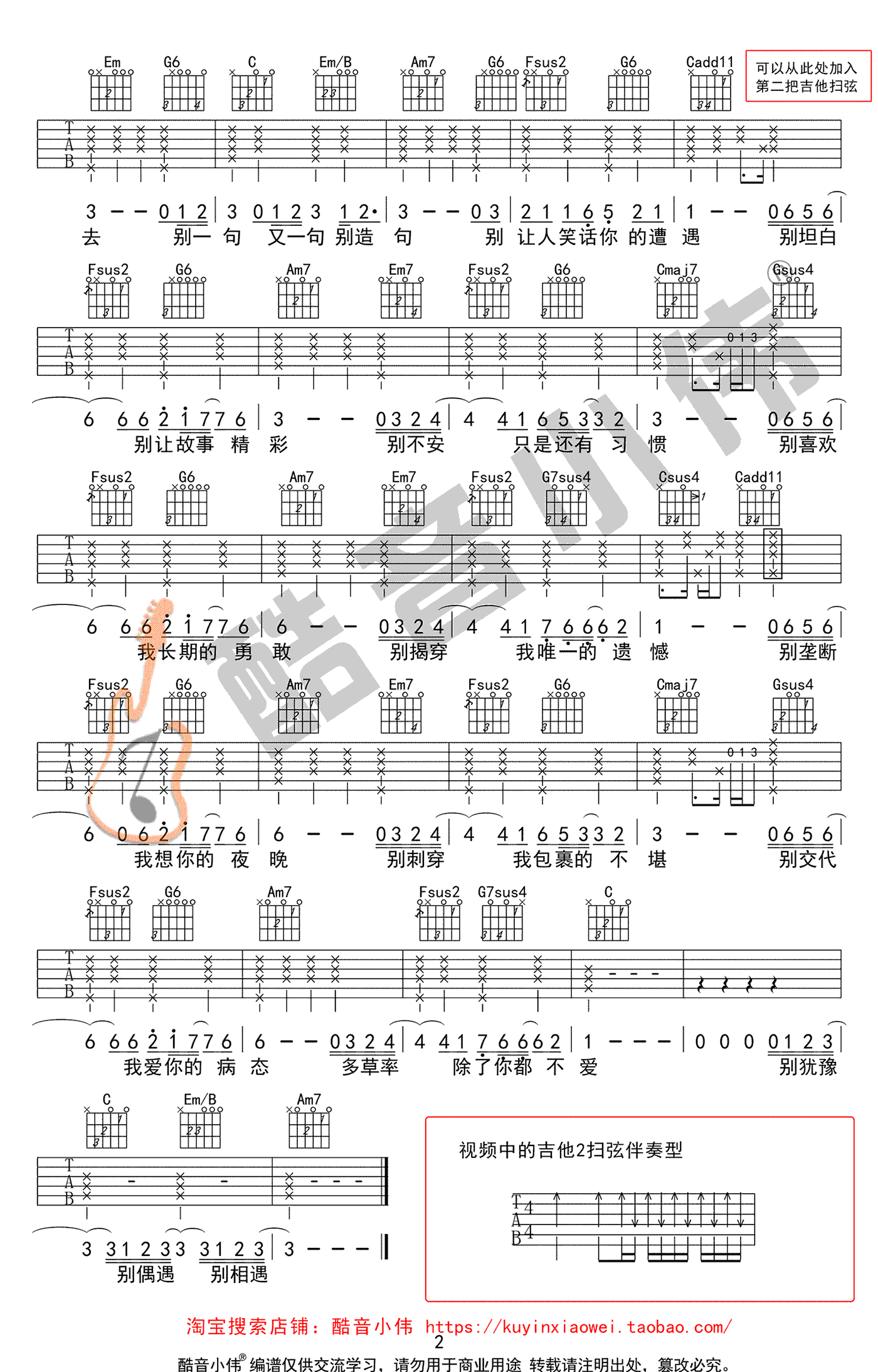 - 我害怕吉他谱 高清六线谱 薛之谦《我害怕》吉他弹唱教学