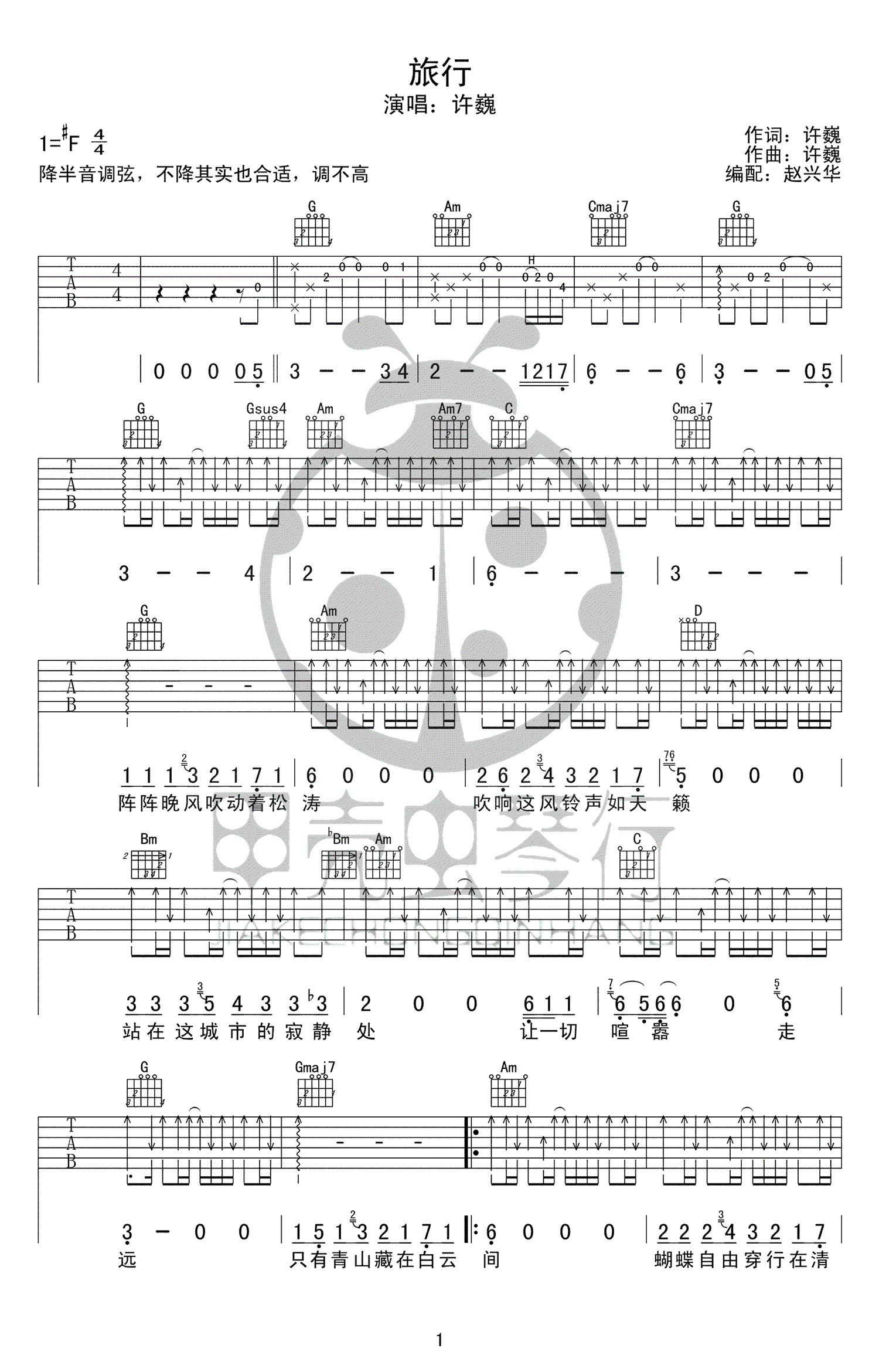 - 许巍《旅行》吉他谱_G调弹唱谱_图片谱高清版