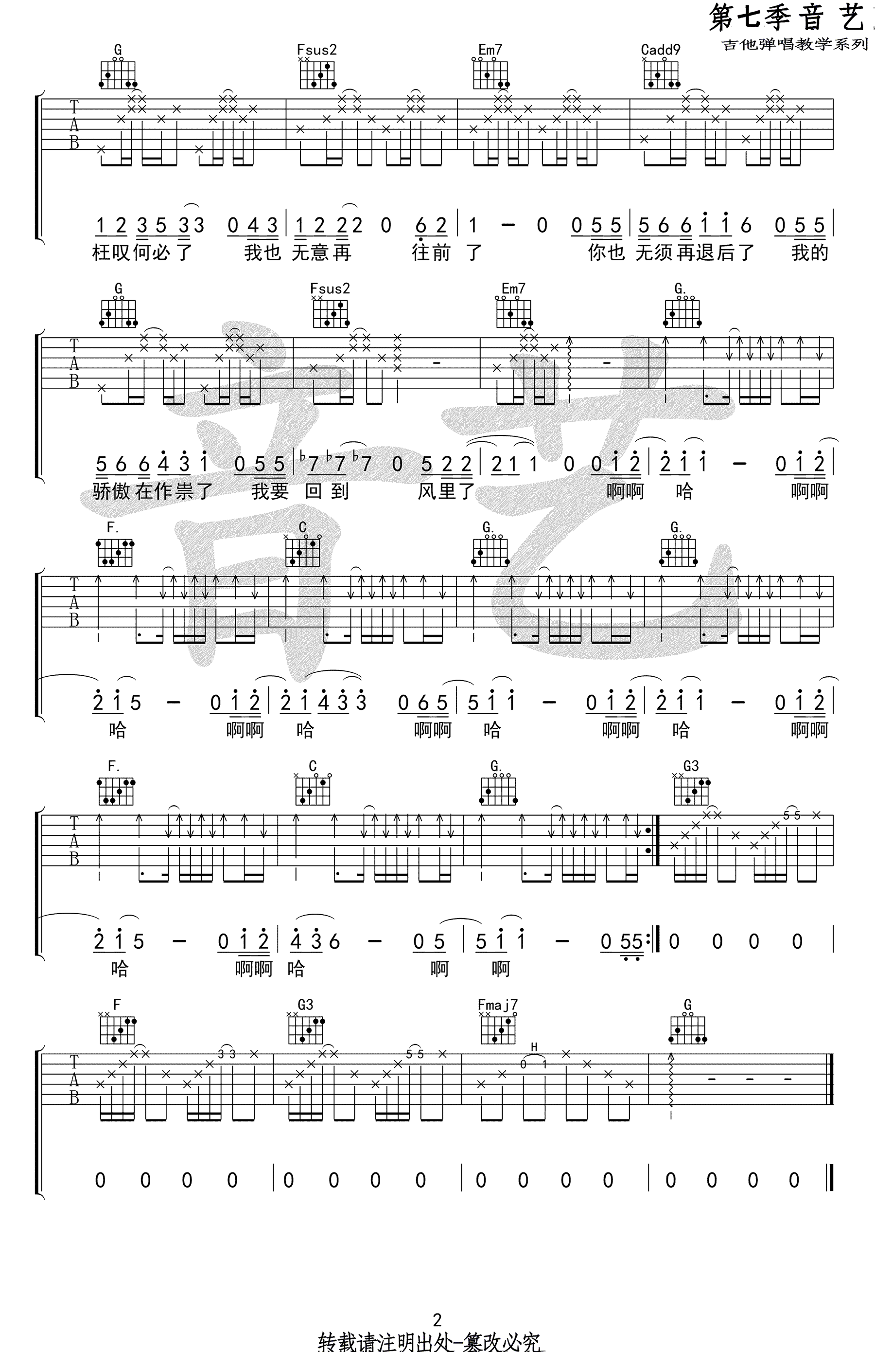 - 民谣在路上吉他谱 前冲乐队 G调弹唱谱 高清图片谱