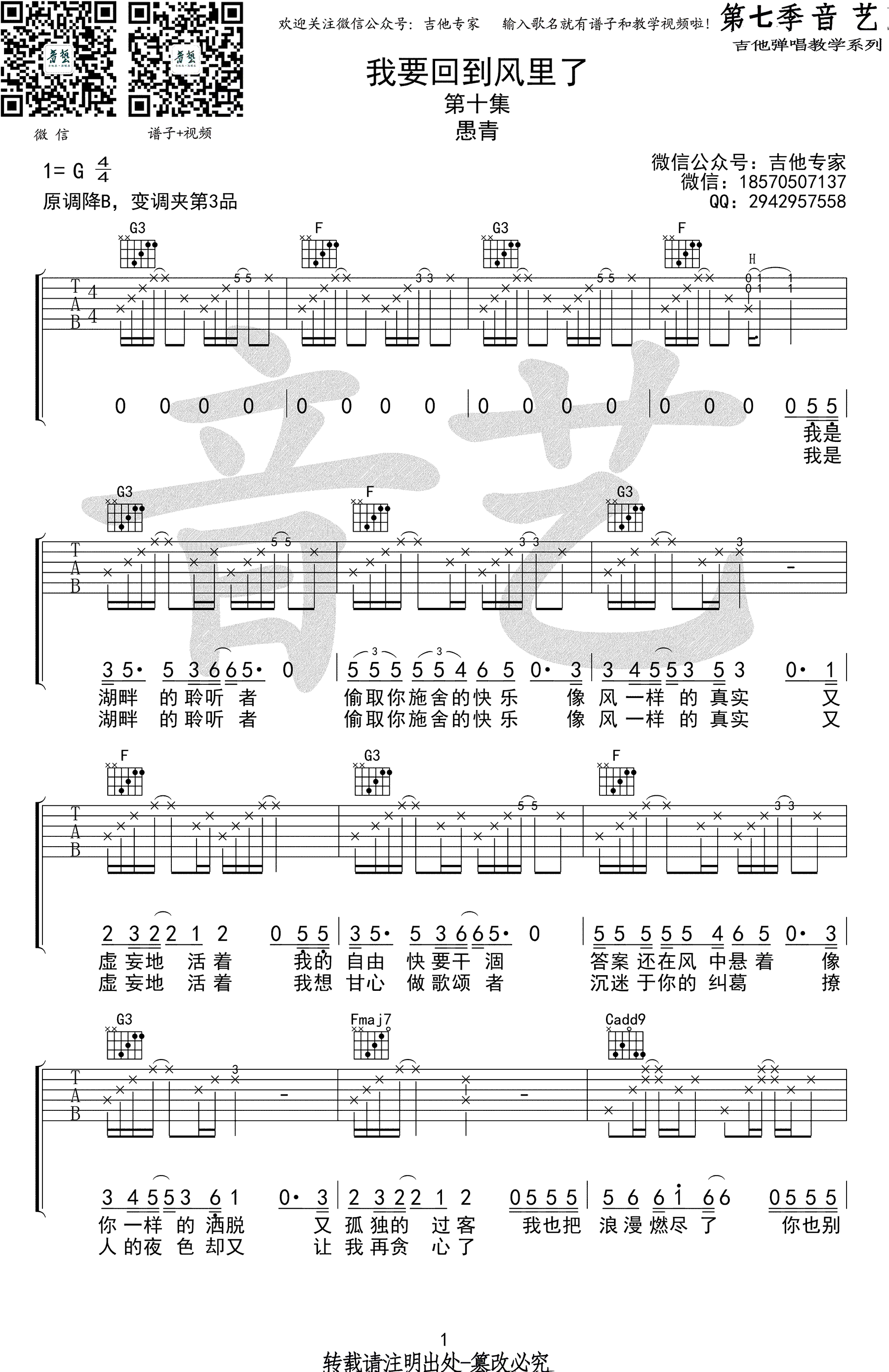 - 逝年吉他谱 夏小虎 G调高清弹唱谱 示范视频演示
