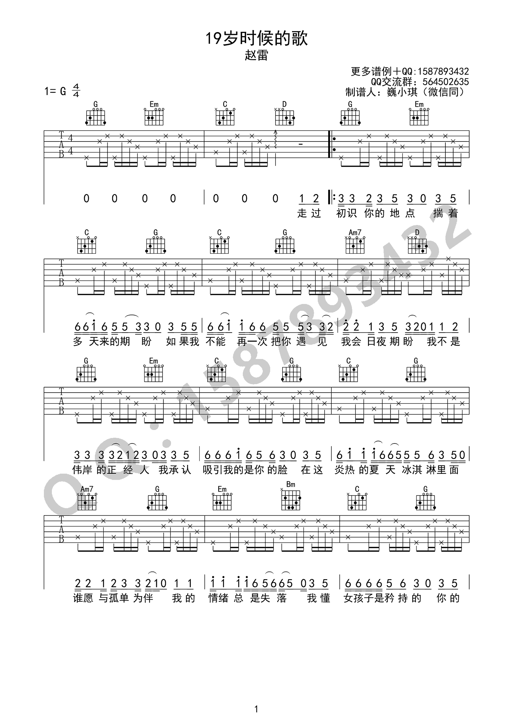 - 不开的唇吉他谱 赵雷 弹唱图片谱 果木浪子教学视频