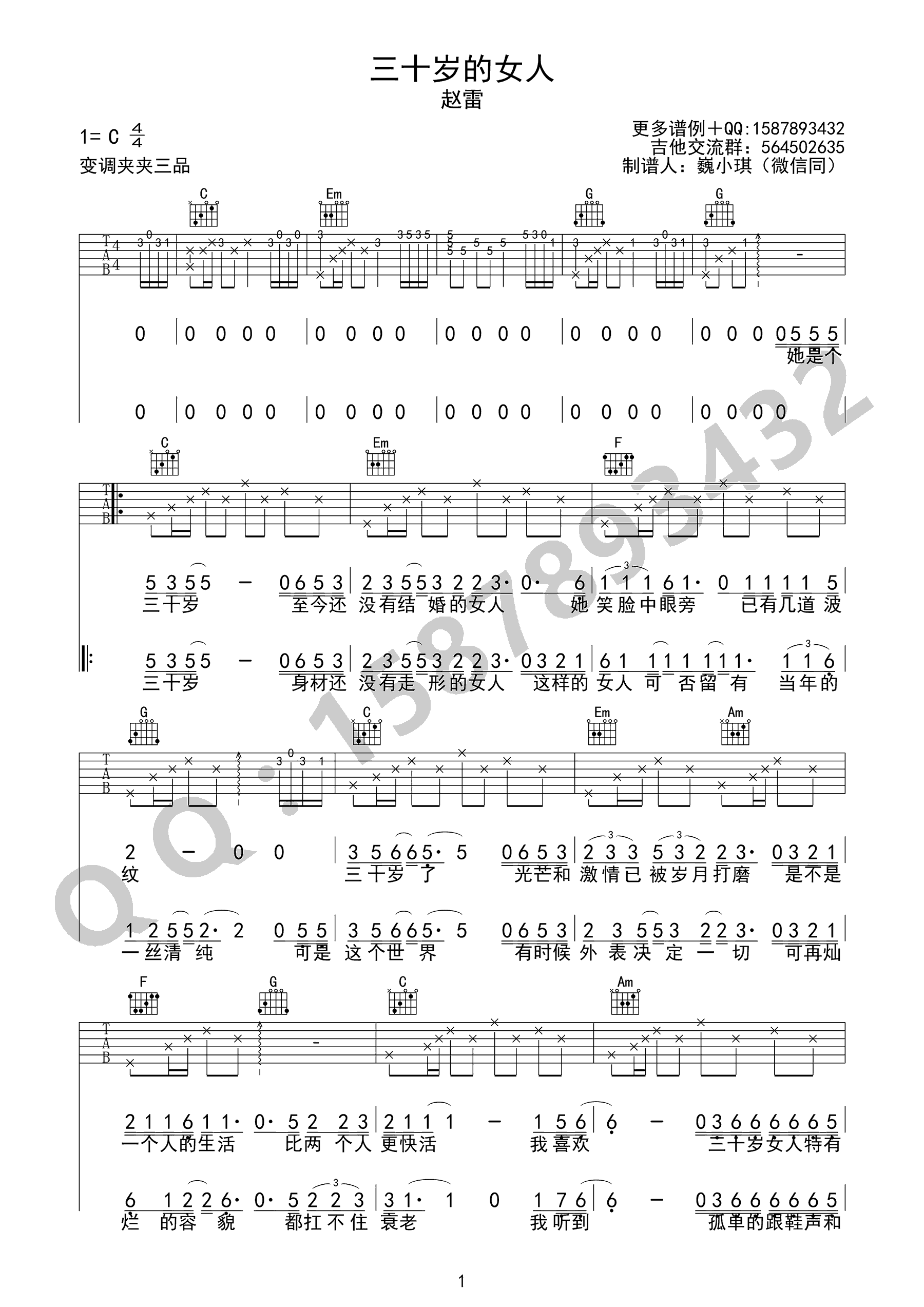 - 南方姑娘吉他谱 赵雷 C调六线谱 果木浪子版 吉他教学视频