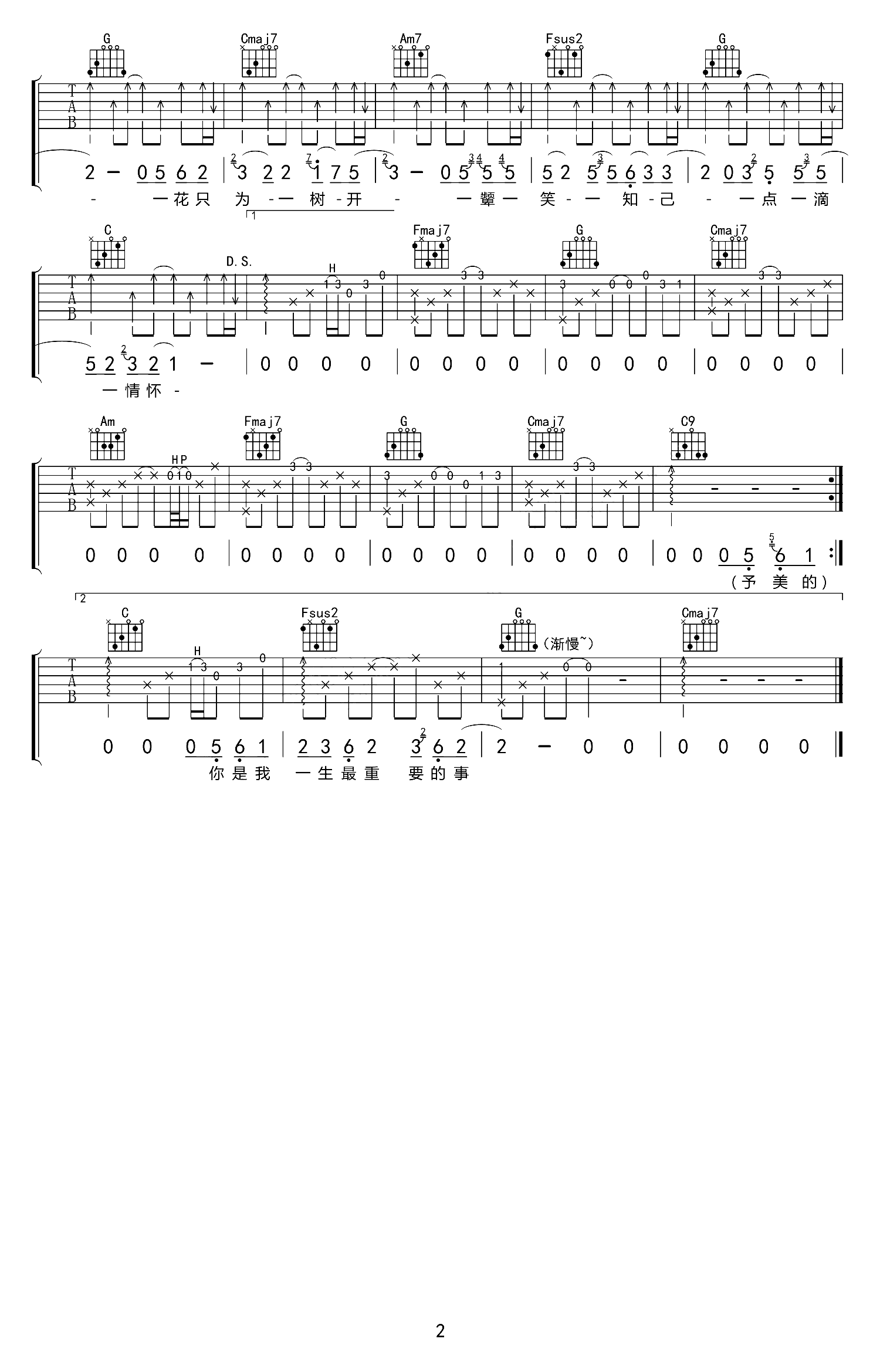 - 陈硕子《等你》吉他谱 C调六线谱 图片谱