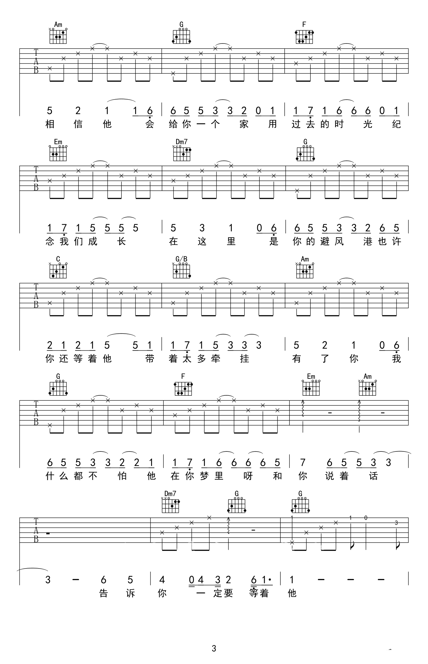 - 凌晨三点吉他谱 陈硕子 C调弹唱谱完整版 图片谱