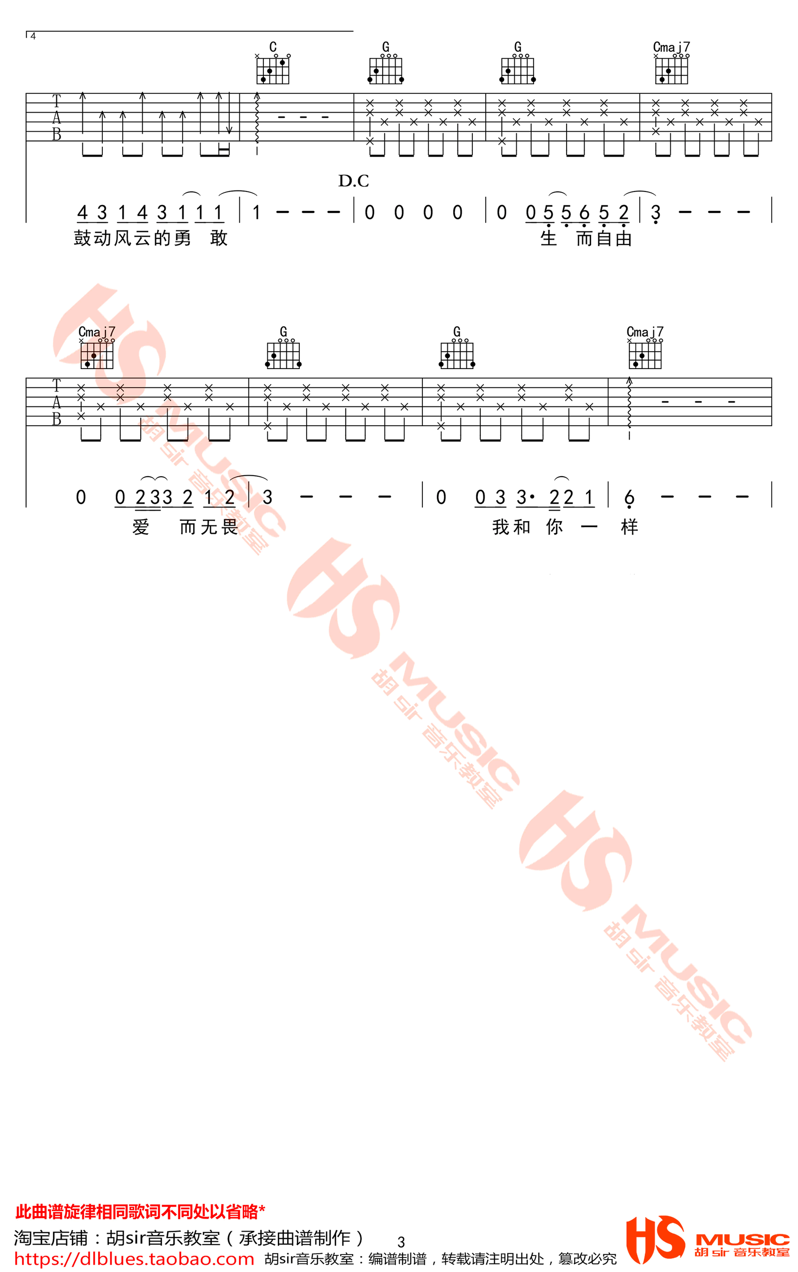 一样吉他谱,G调弹唱谱,CAPO夹四品,一样吉他六线谱,图片谱高清版,感谢胡sir编配,易唱网上传推荐。