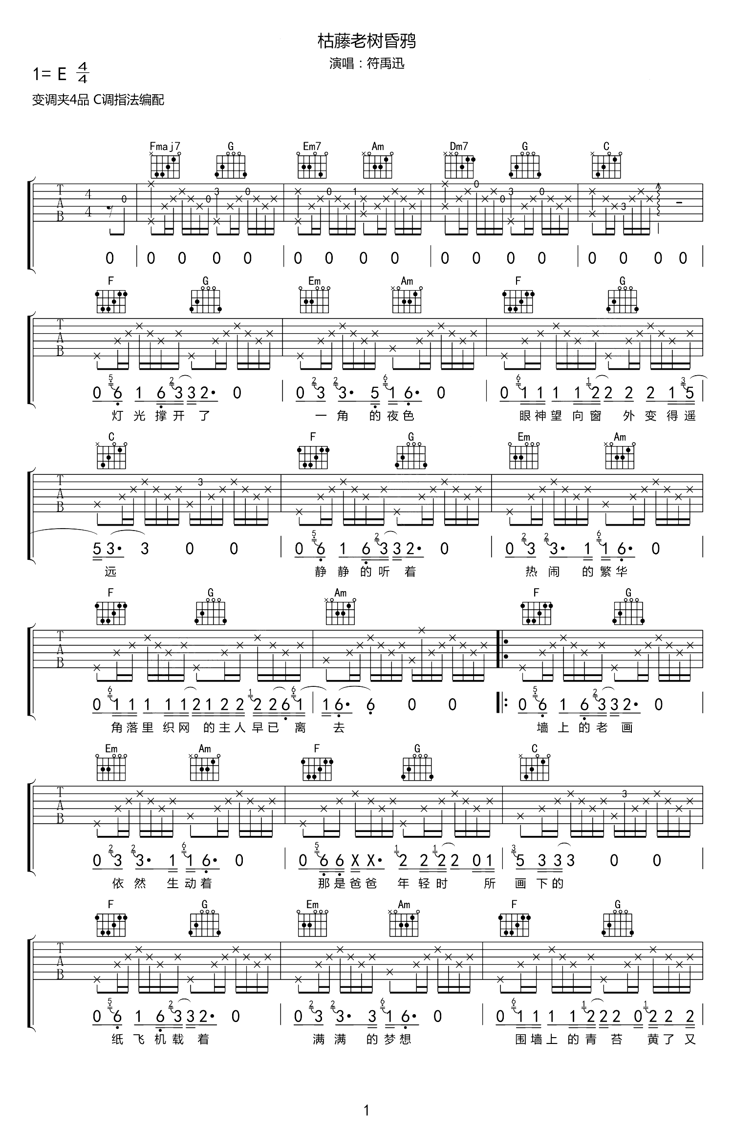 - 孟凡明《只只》吉他谱 C调六线谱 图片谱