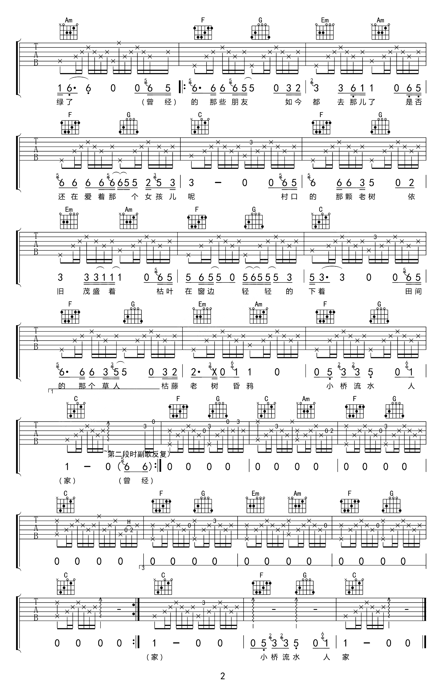 - 安和桥吉他谱 包师语女生版 C调简单弹唱谱