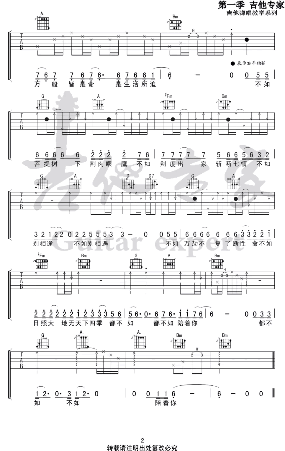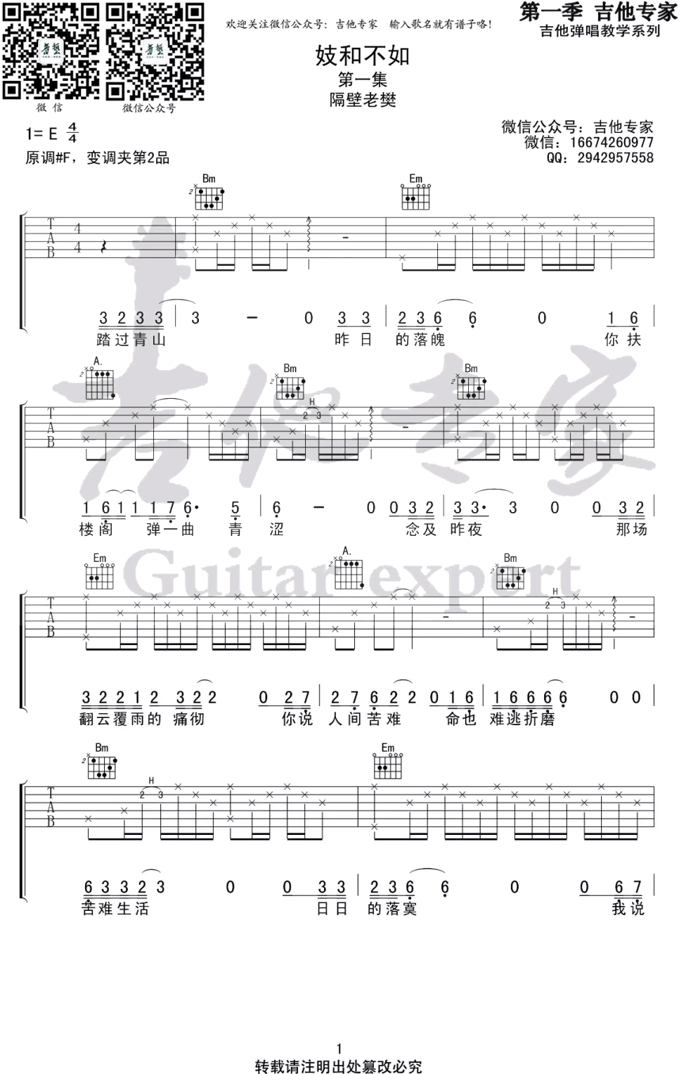 - 妓和不如吉他谱 隔壁老樊 弹唱六线谱 抖音歌曲