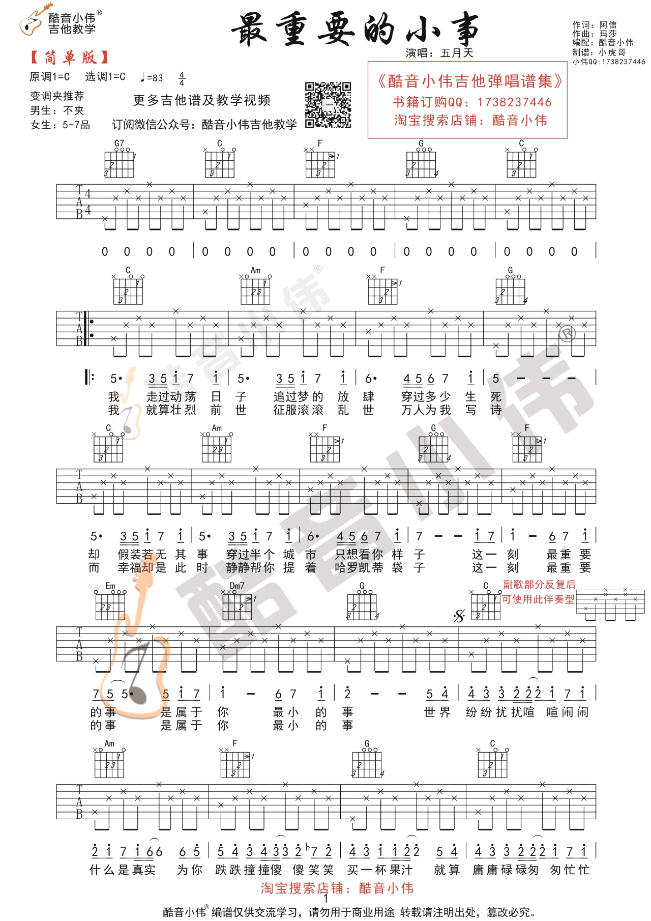 - 后来的我们吉他谱 C调简单版 五月天 酷音小伟版