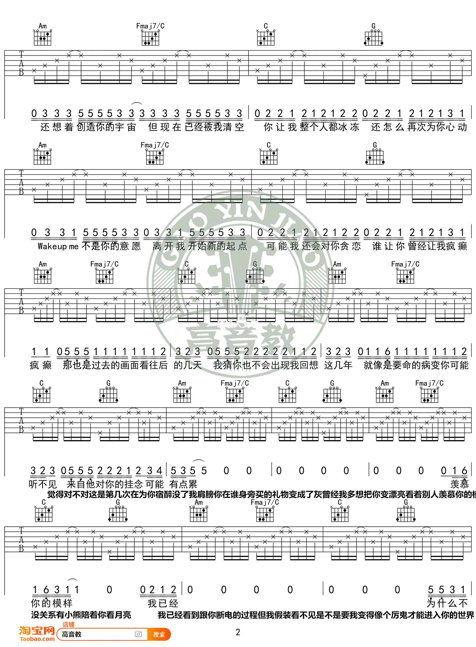 - 不染吉他谱 毛不易《香蜜沉沉烬如霜》主题曲 吉