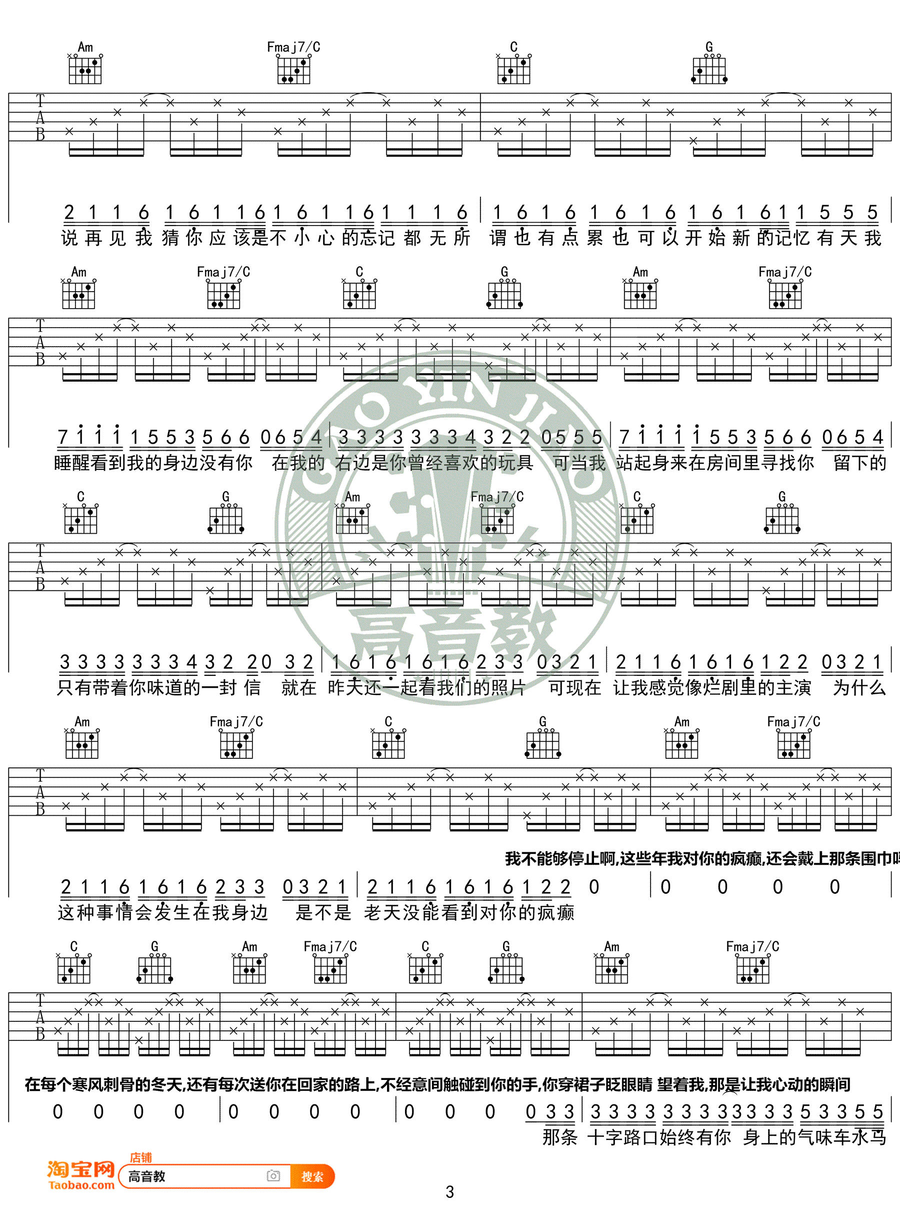 - 凌晨三点吉他谱 陈硕子 C调弹唱谱完整版 图片谱