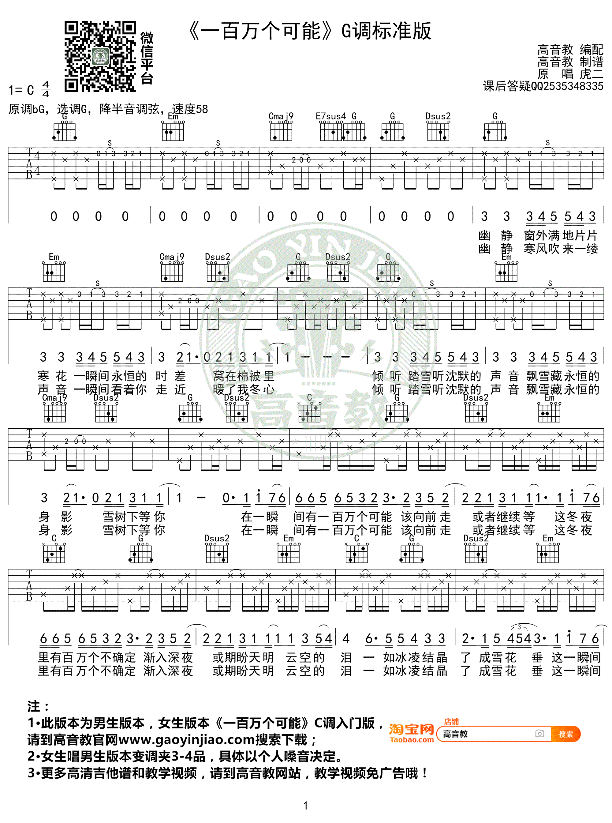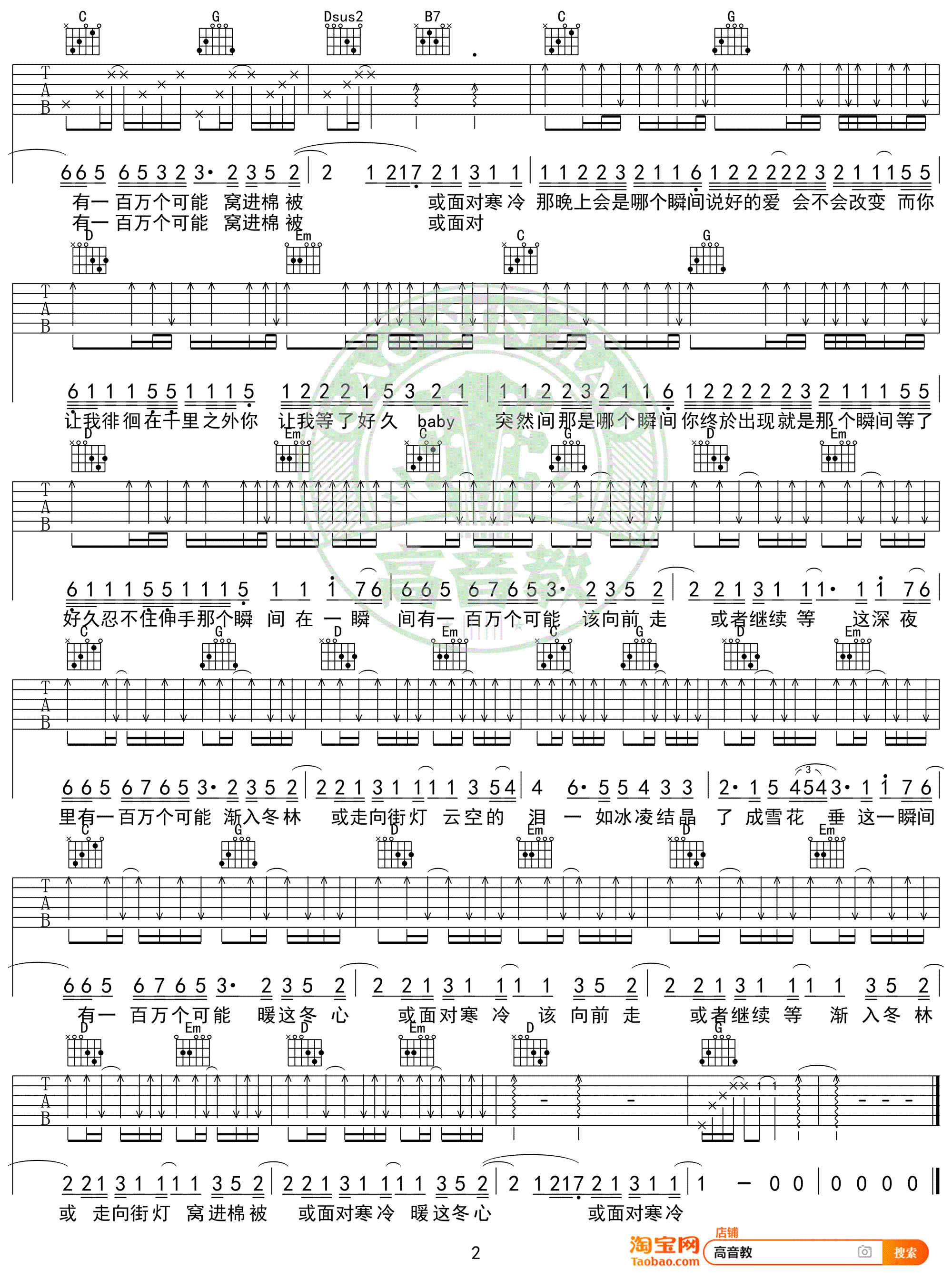 - 一百万个可能吉他谱_克丽丝叮_抖音歌曲_图片谱