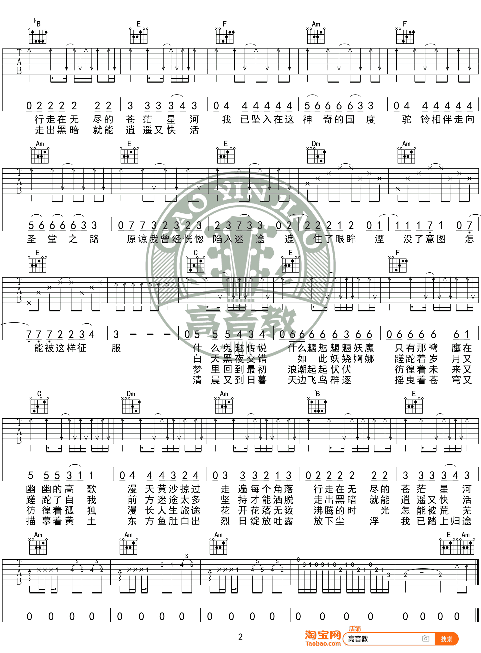 - 沙漠骆驼吉他谱 展展与罗罗 C调弹唱谱 高清六线谱