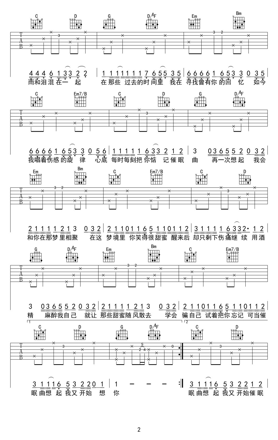 - 不能忘不能爱吉他谱 C调 曹越 高清图片谱