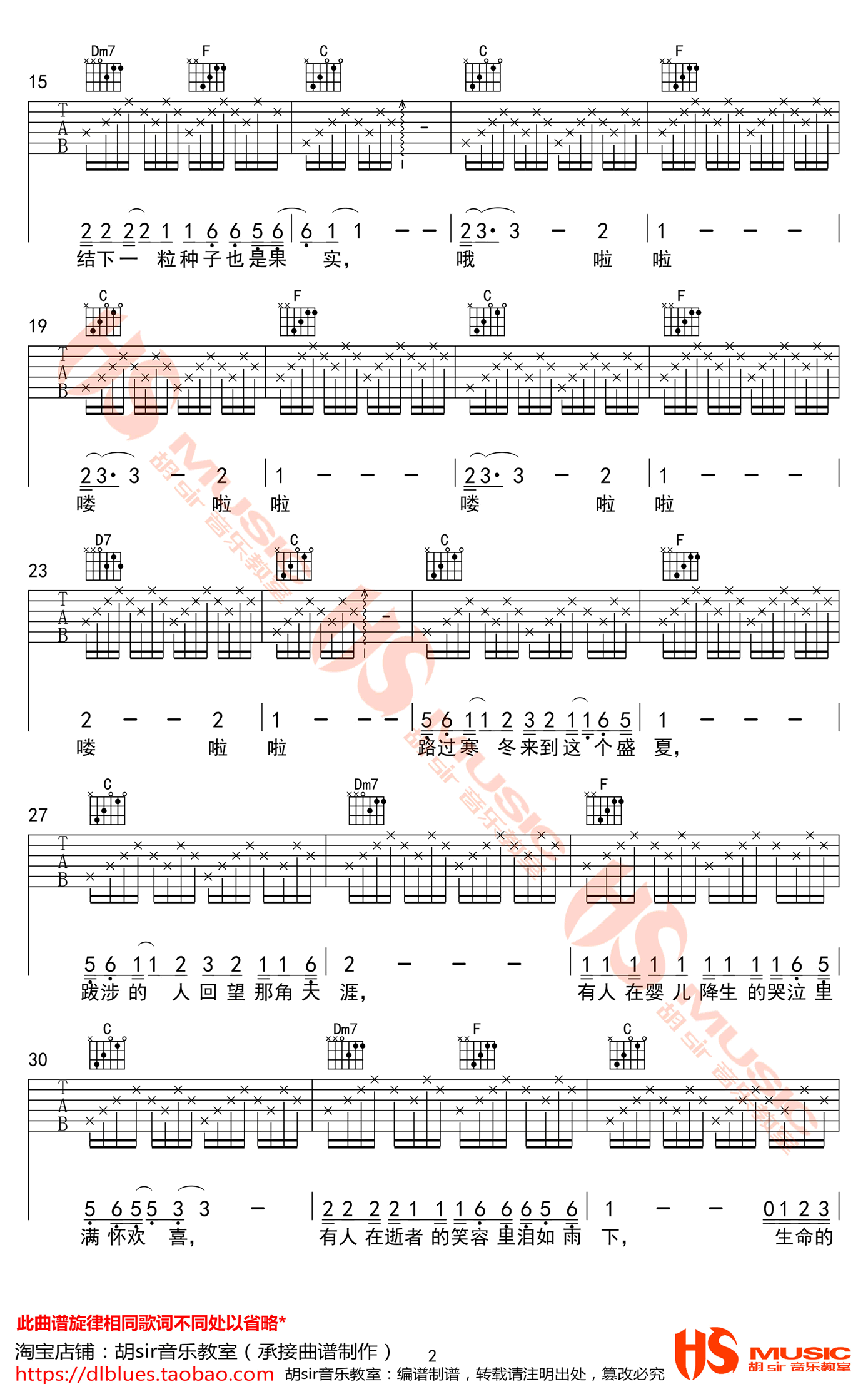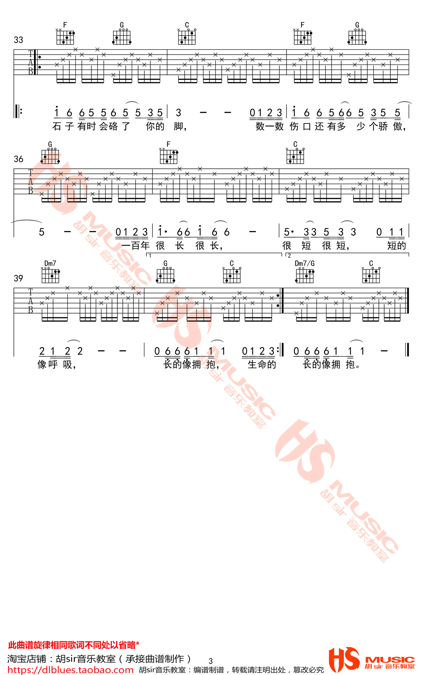 - 《不染》吉他谱 毛不易 G调完整版 弹唱图片谱