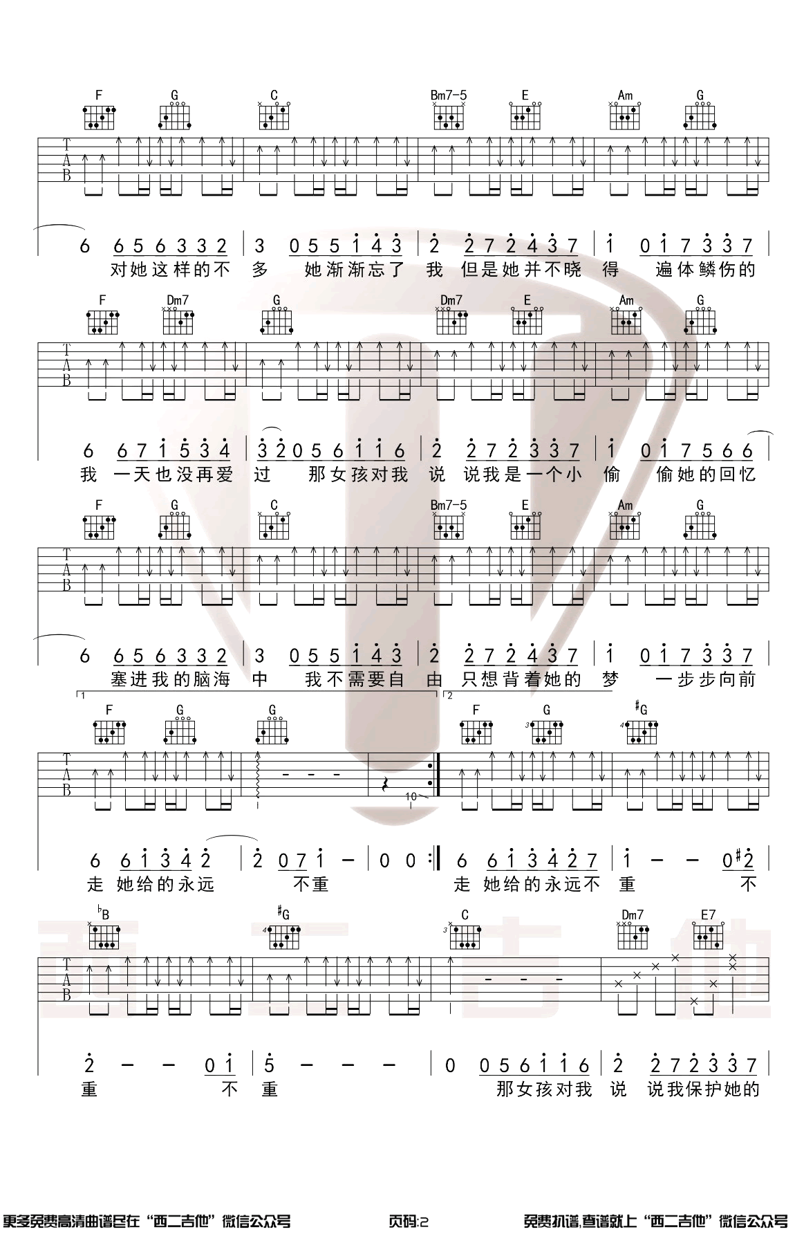 - 那女孩对我说吉他谱_戴羽彤_女生版弹唱谱_吉他教学视频