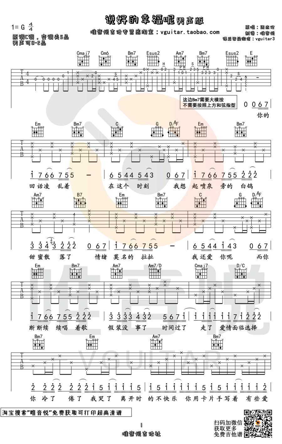 - 说好的幸福呢吉他谱_G调男生版_吉他弹唱演示